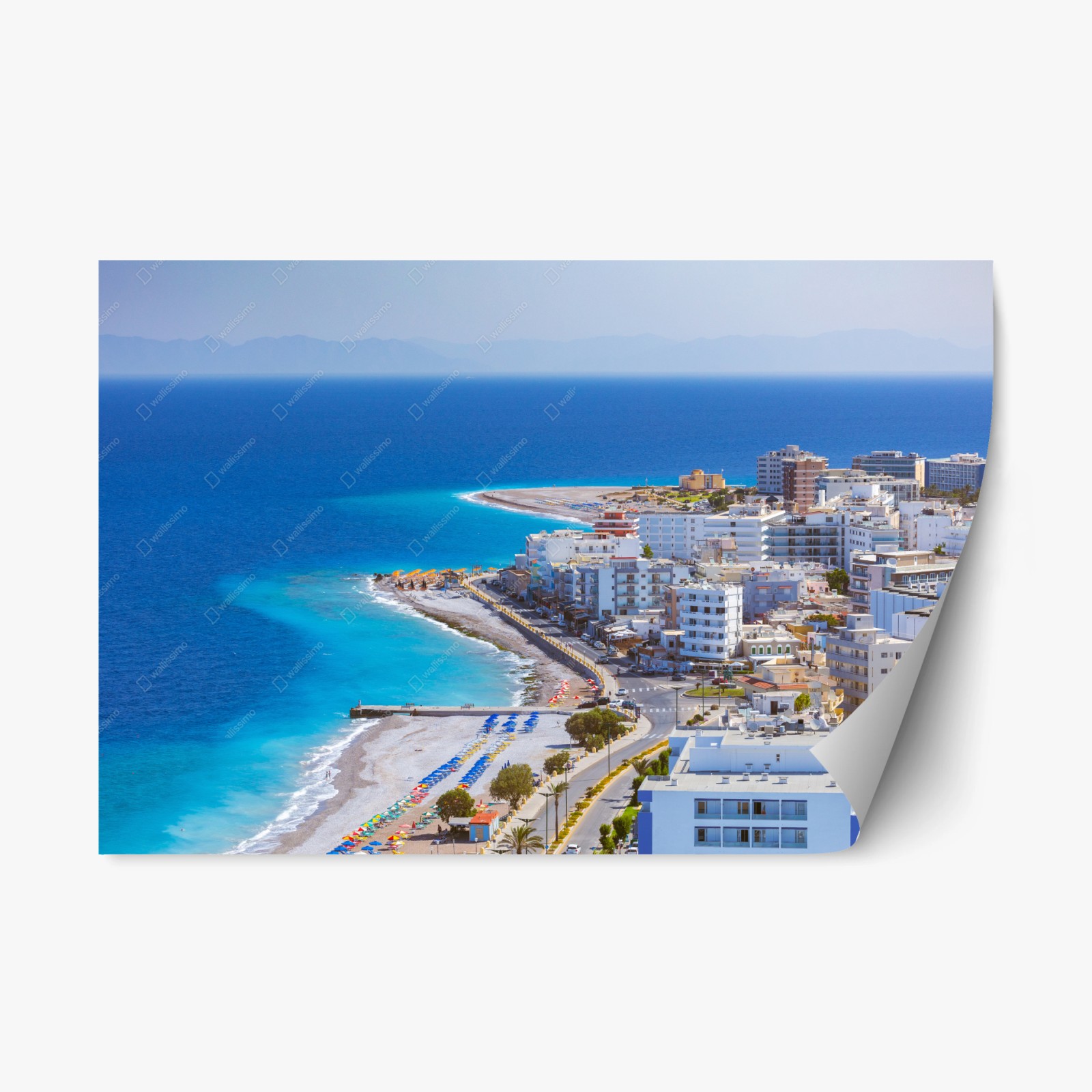 Adesivo riposizionabile Ombrelloni colorati sulla costa di Rodi