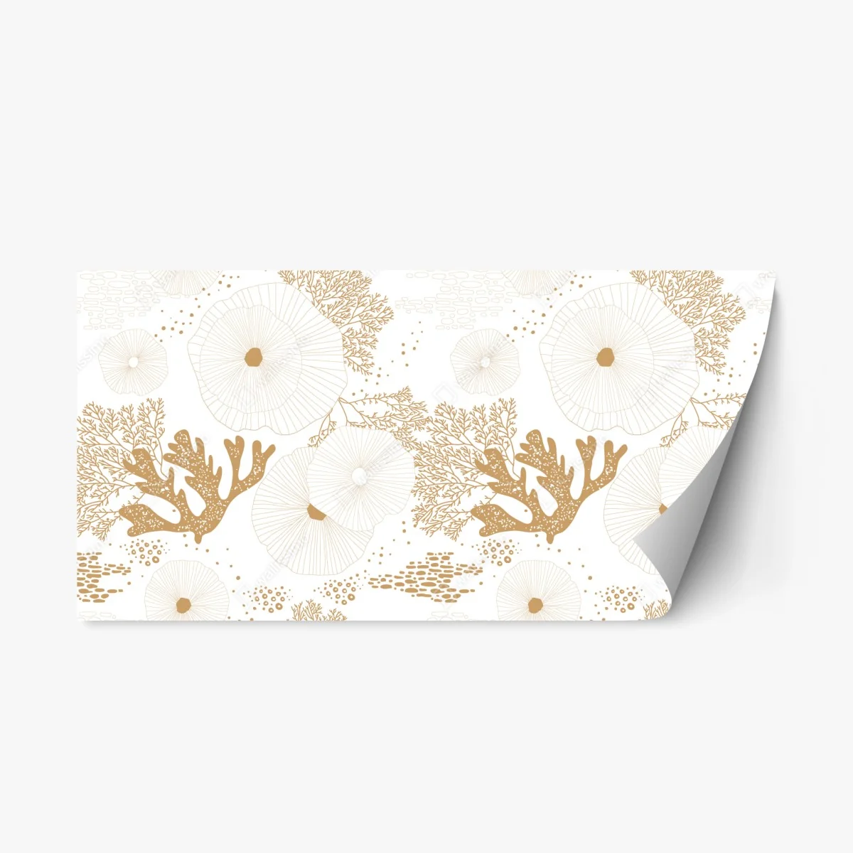 Adesivo riposizionabile Coralli e anemoni dorati su sfondo bianco