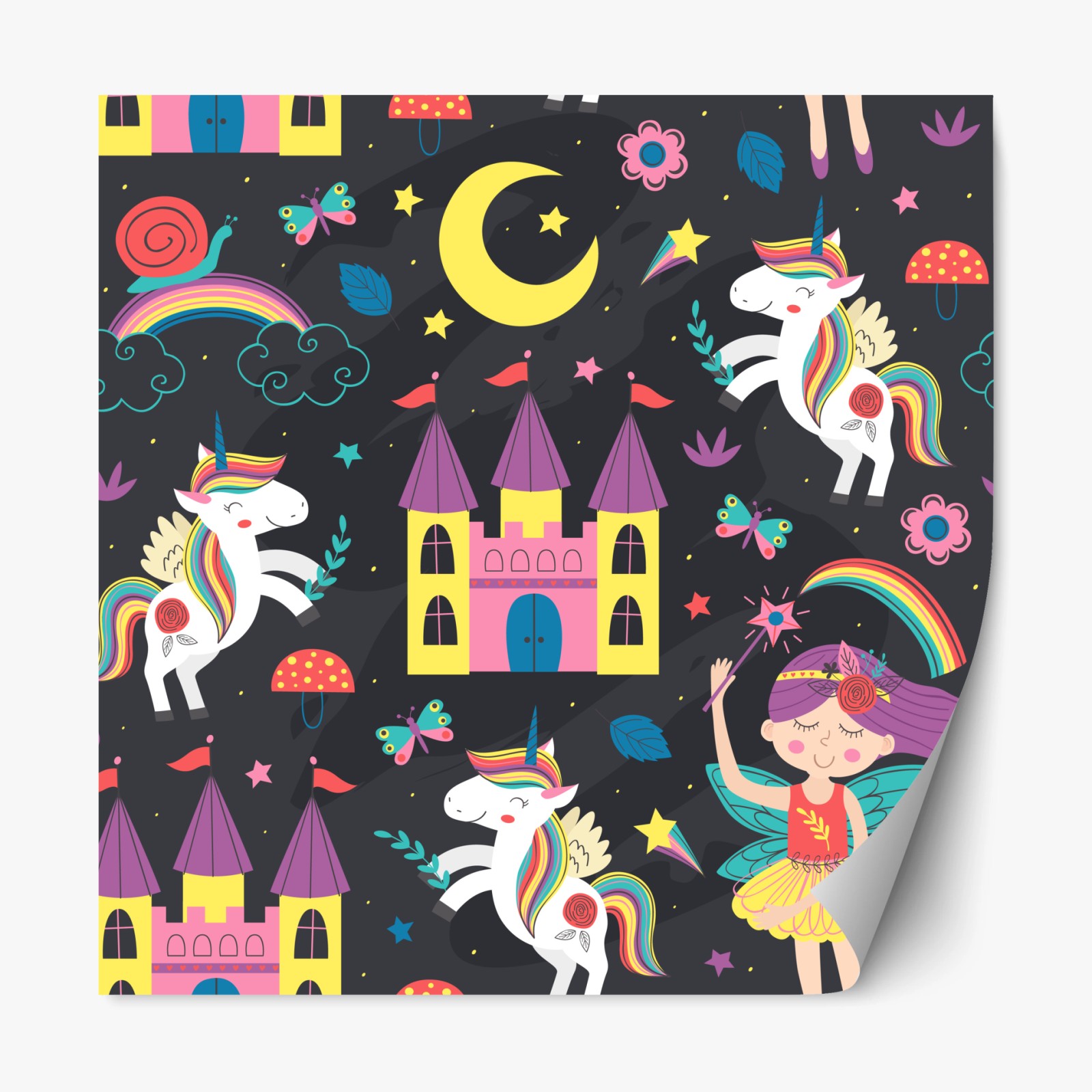 Adesivo riposizionabile Magico mondo degli unicorni e delle fate