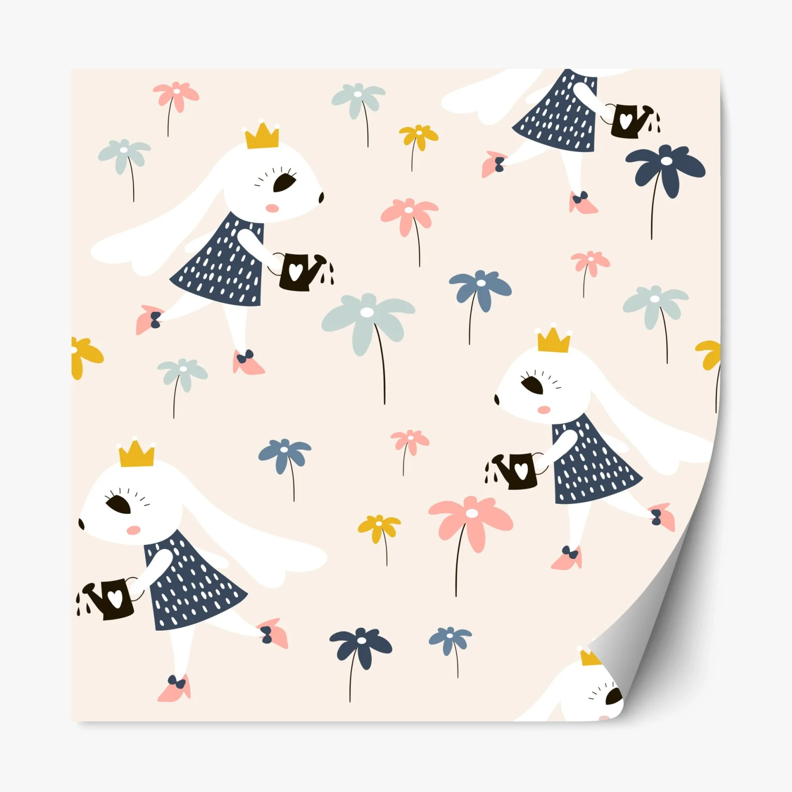 Adesivo riposizionabile Coniglietta regina nel giardino fiabesco