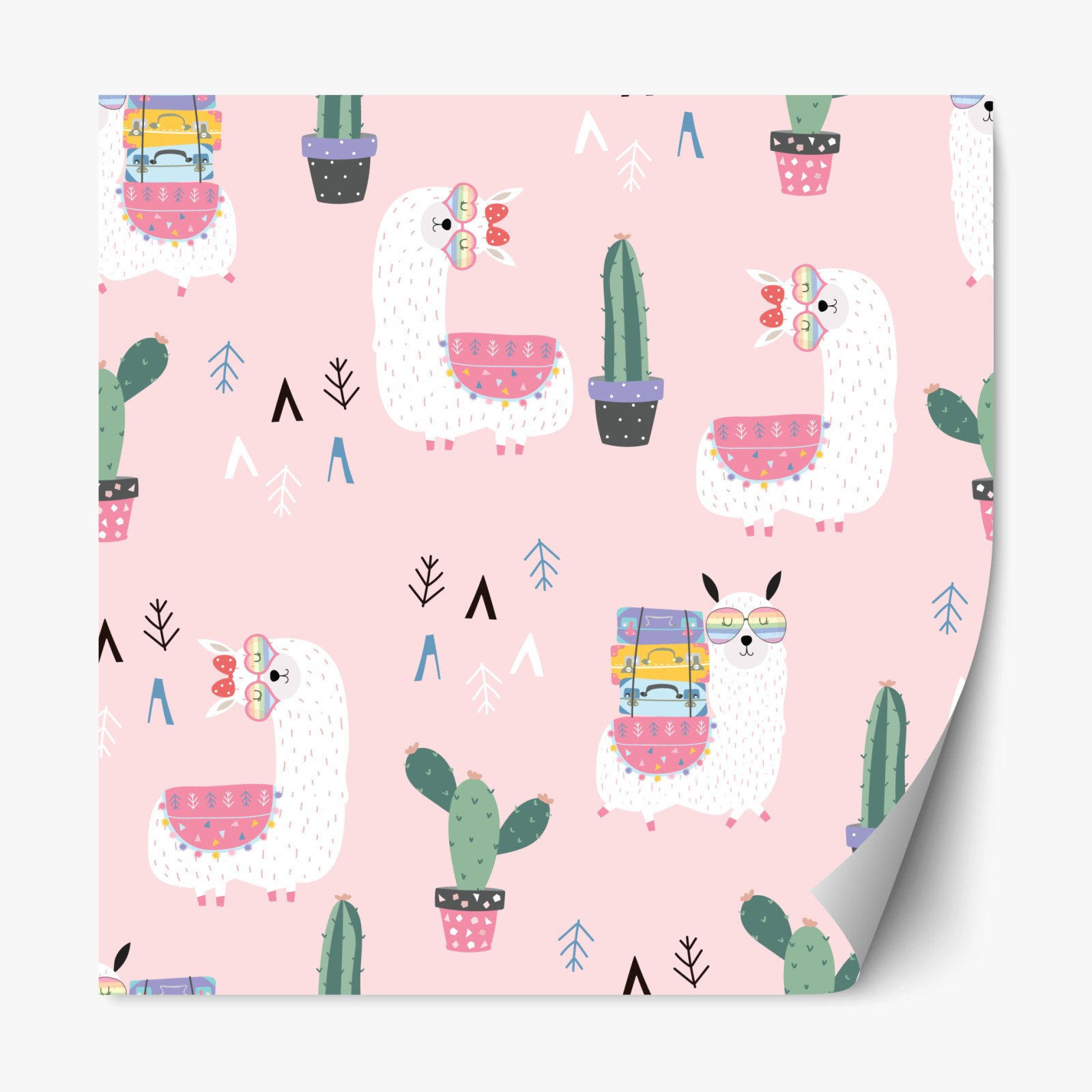Adesivo riposizionabile Fantasia alpaca e cactus su sfondo rosa