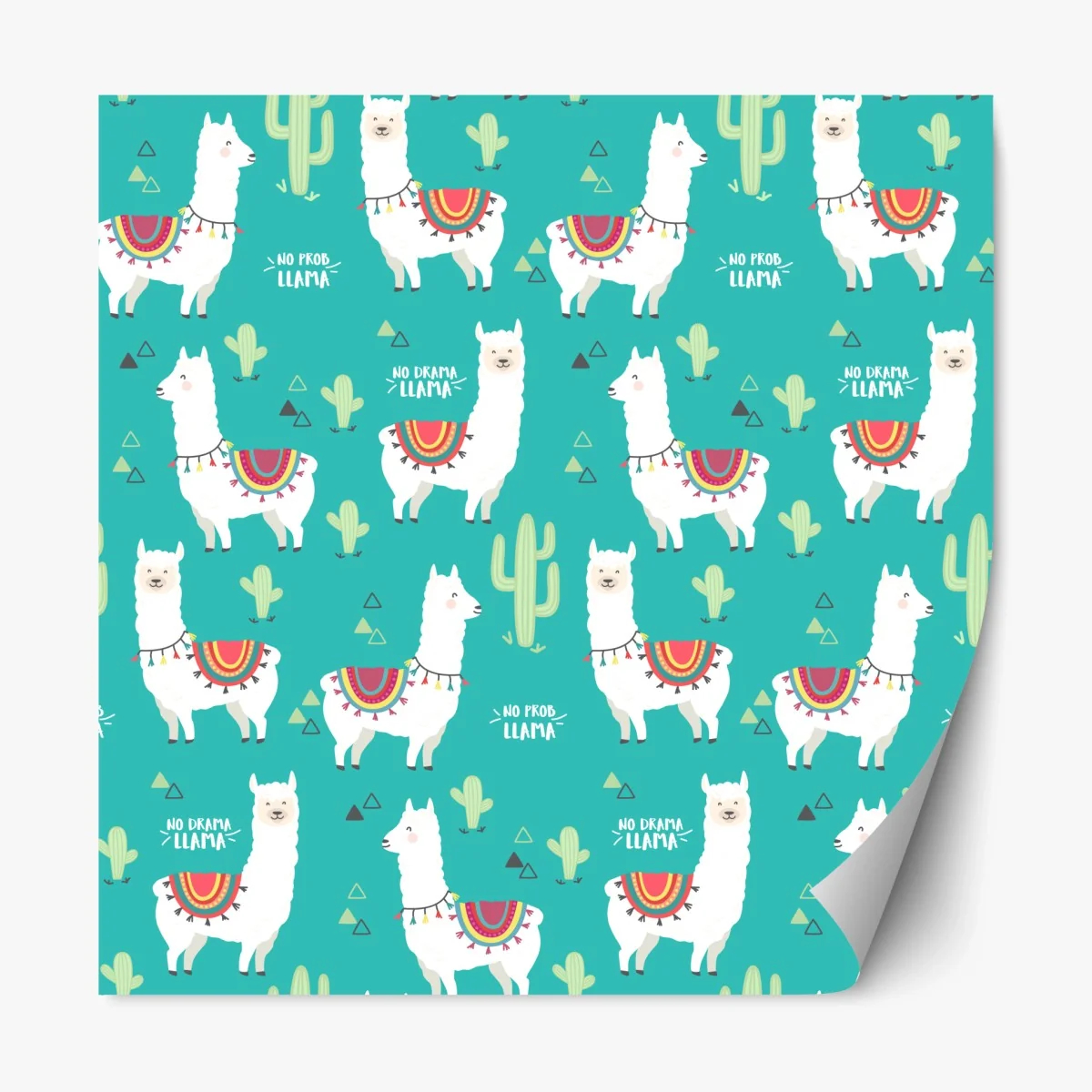 Adesivo riposizionabile Motivo di lama felici su sfondo turchese