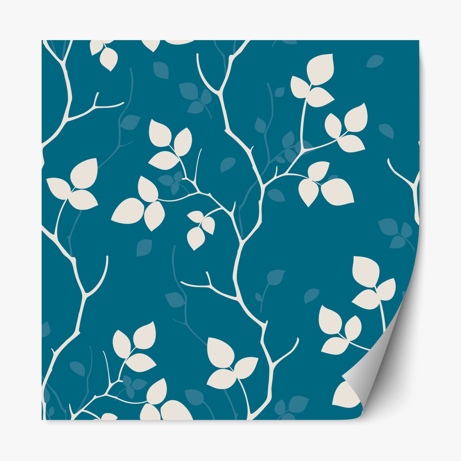 Adesivo riposizionabile Motivo botanico turchese con foglie avorio