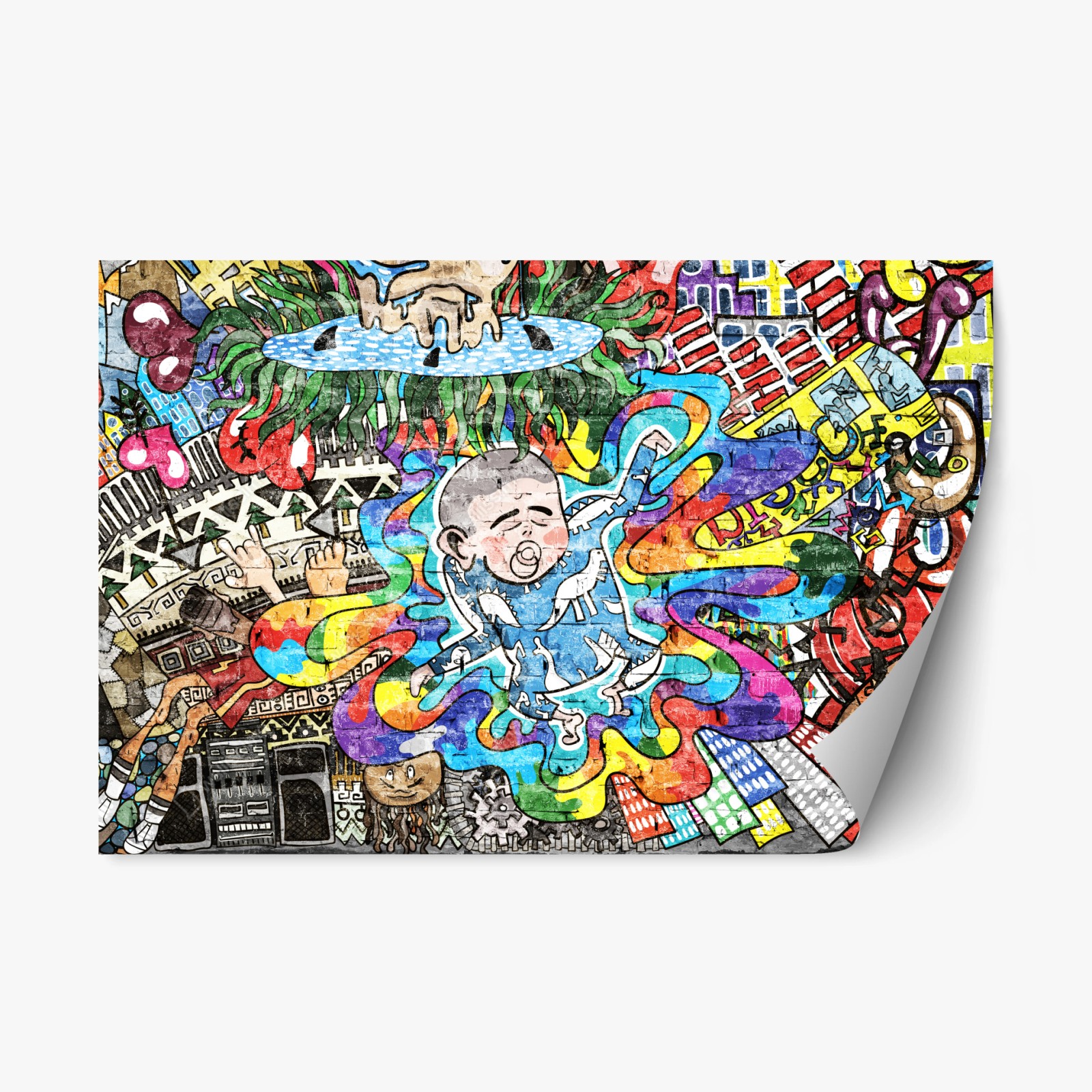 Adesivo riposizionabile Nascita psichedelica: bambino tra colori e città