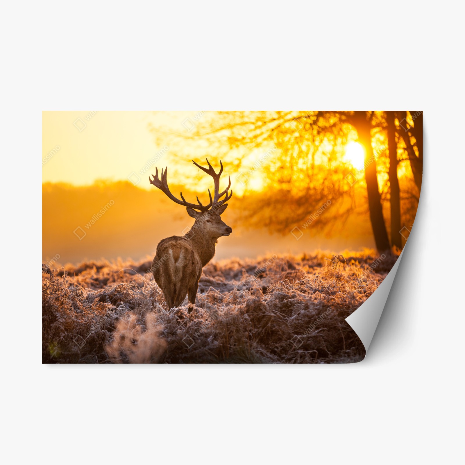 Adesivo riposizionabile Cervo all'alba nel campo gelato