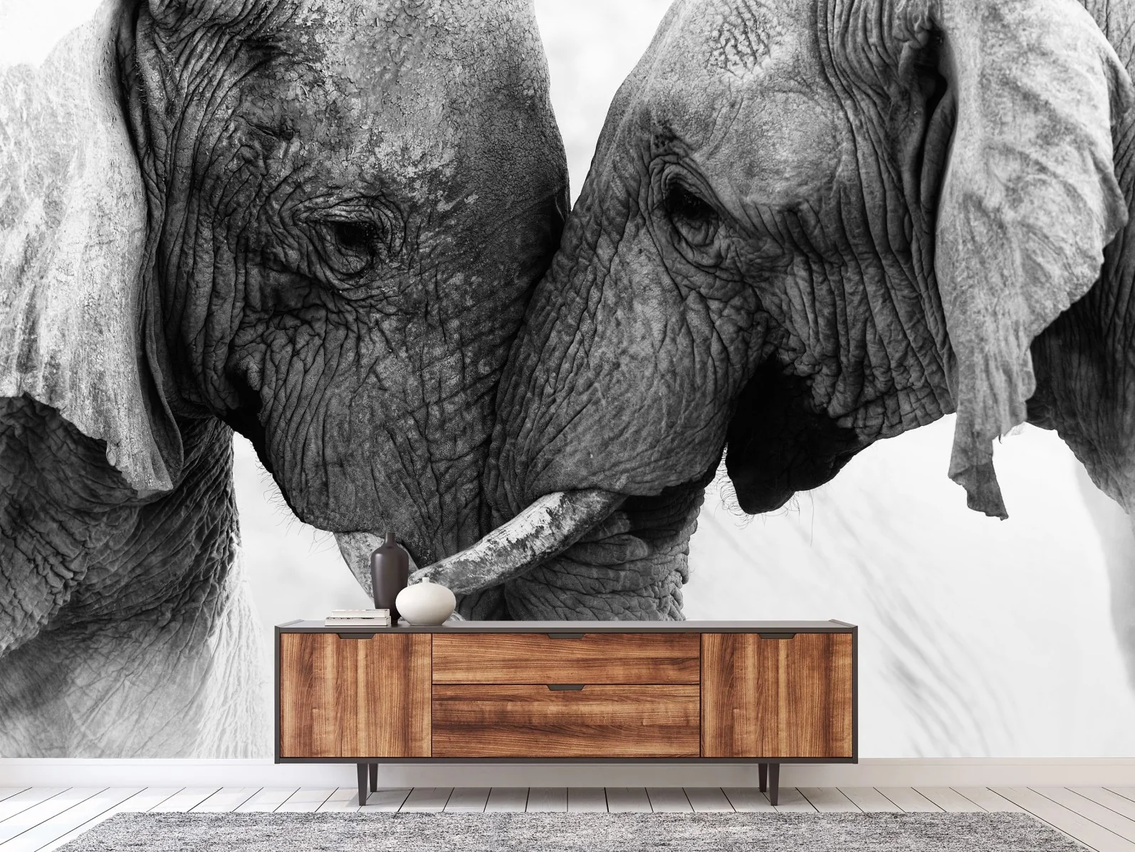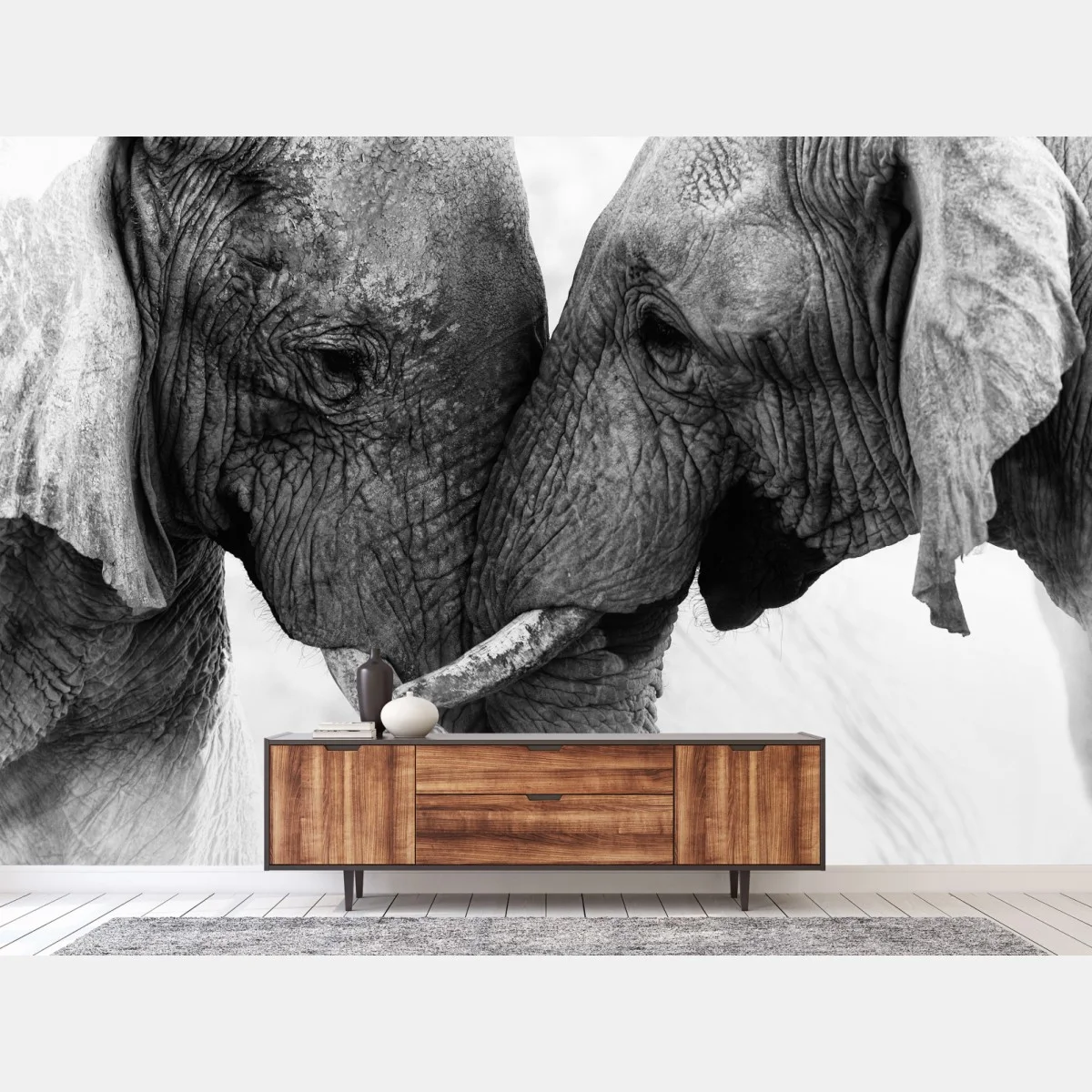 Carta da parati Incontro intimo tra elefanti in bianco e nero