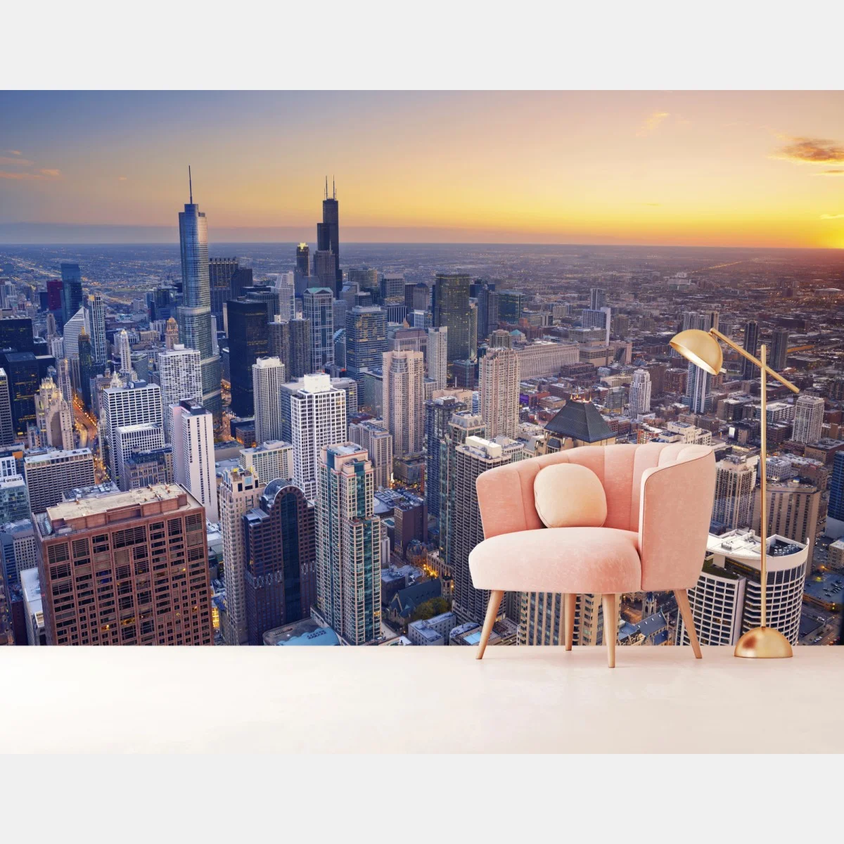 Carta da parati Skyline di Chicago al tramonto