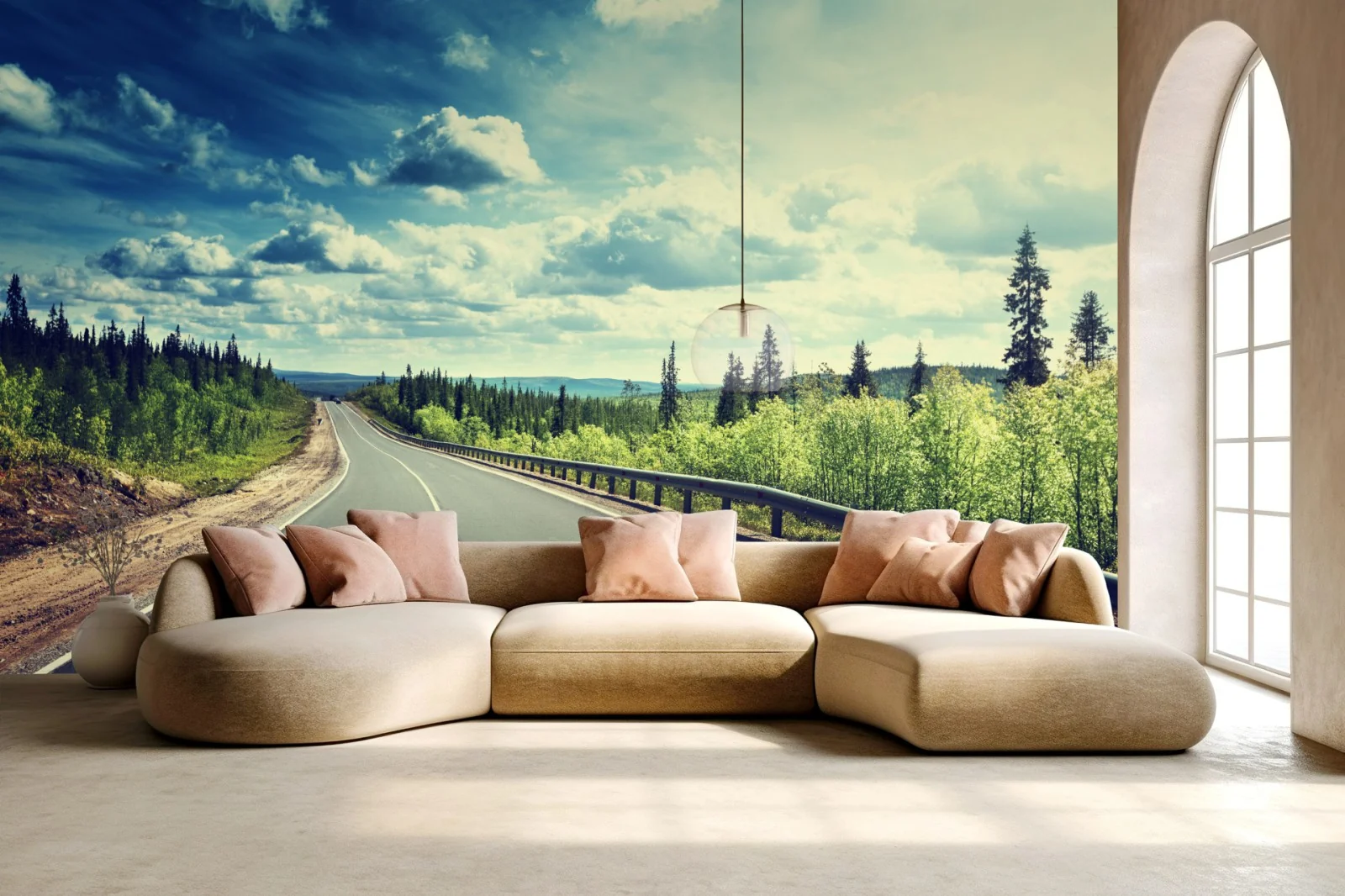 - natura, paesaggio, cielo nuvoloso, strada, asfalto, viaggio, serenità, orizzonte, foresta settentrionale, barriera di sicurezza