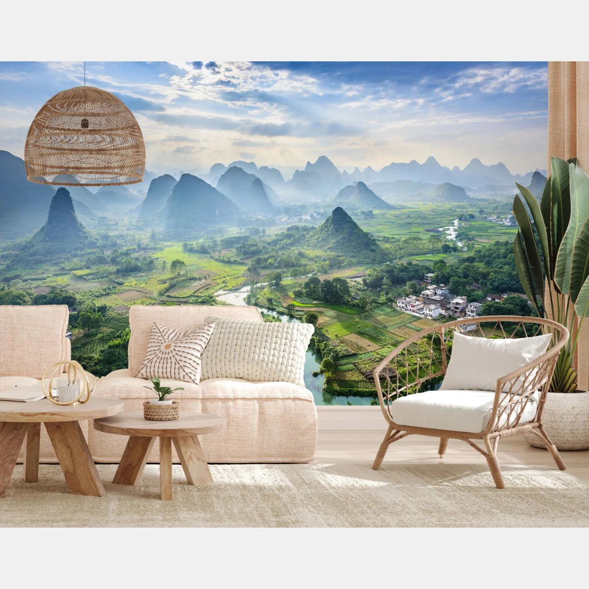 Carta da parati Panorama di risaie e montagne carsiche all'alba