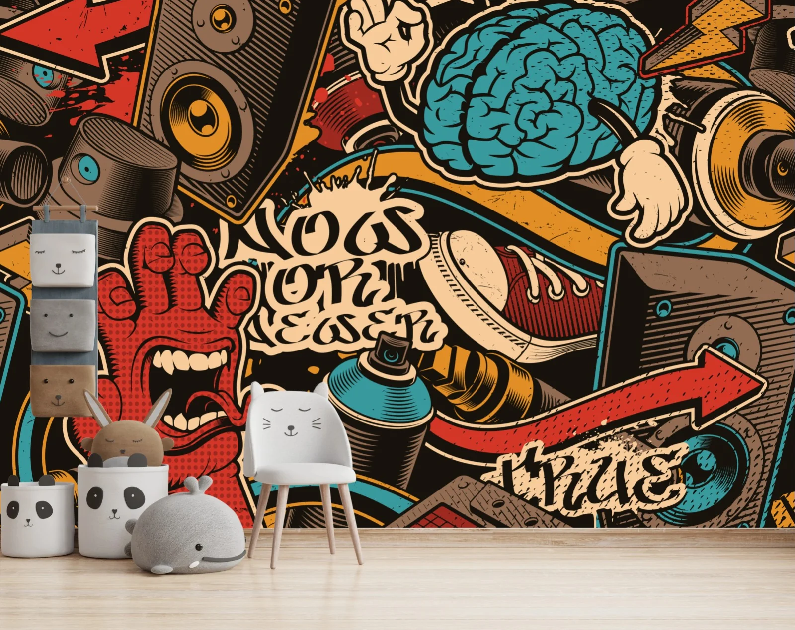 - musica, graffiti, street art, stile urbano, cassetta, altoparlante, spray, cervello, mano, sneaker