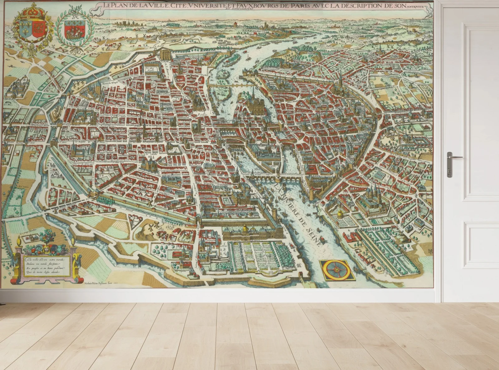 Carta da parati Antica mappa panoramica di Parigi e della Senna