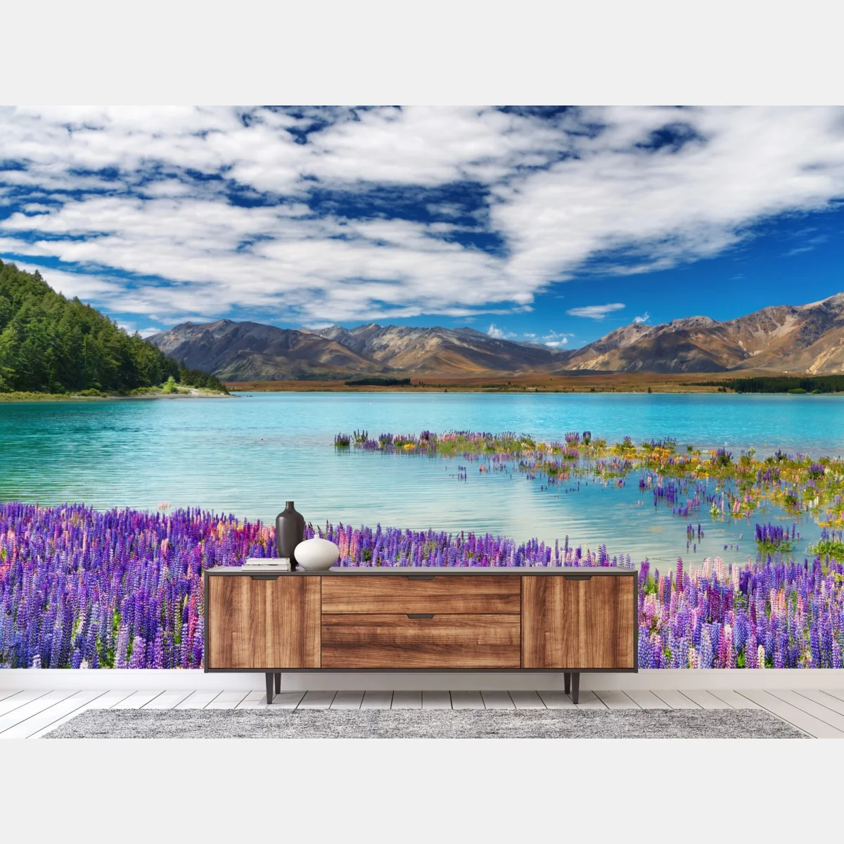 Carta da parati Campi di lupini sul Lago Tekapo