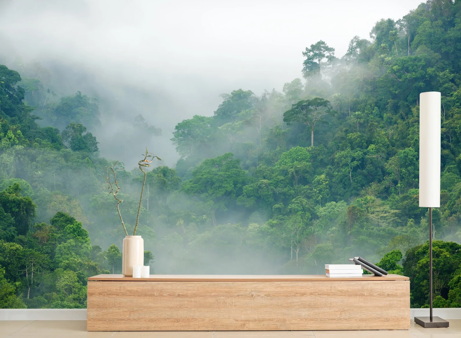Porta la tranquillità della foresta pluviale thailandese nel tuo spazio con questa immagine che cattura la nebbia mattutina e il verde intenso, perfetta per creare un'atmosfera rilassante e rigenerante.Di piùMeno