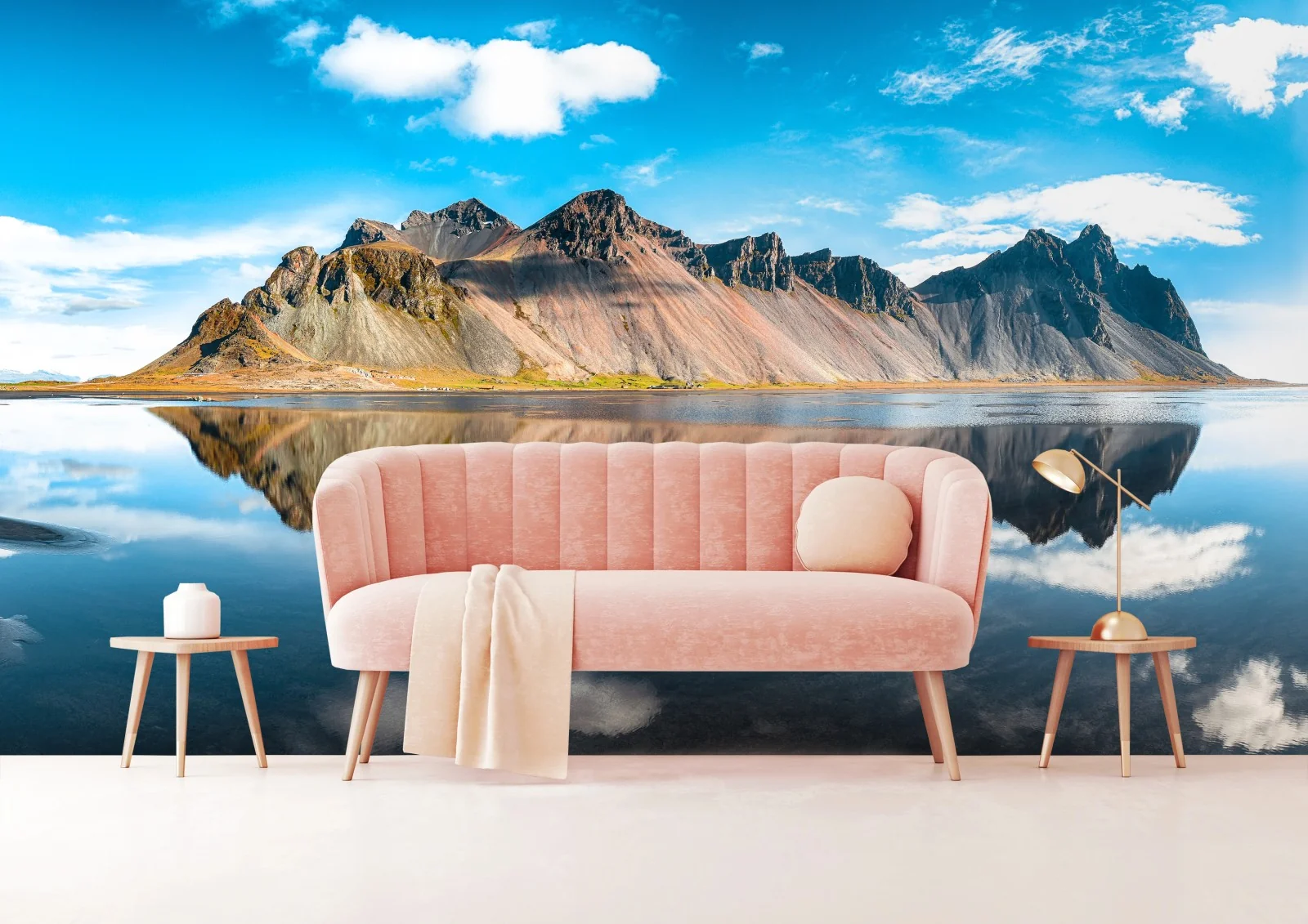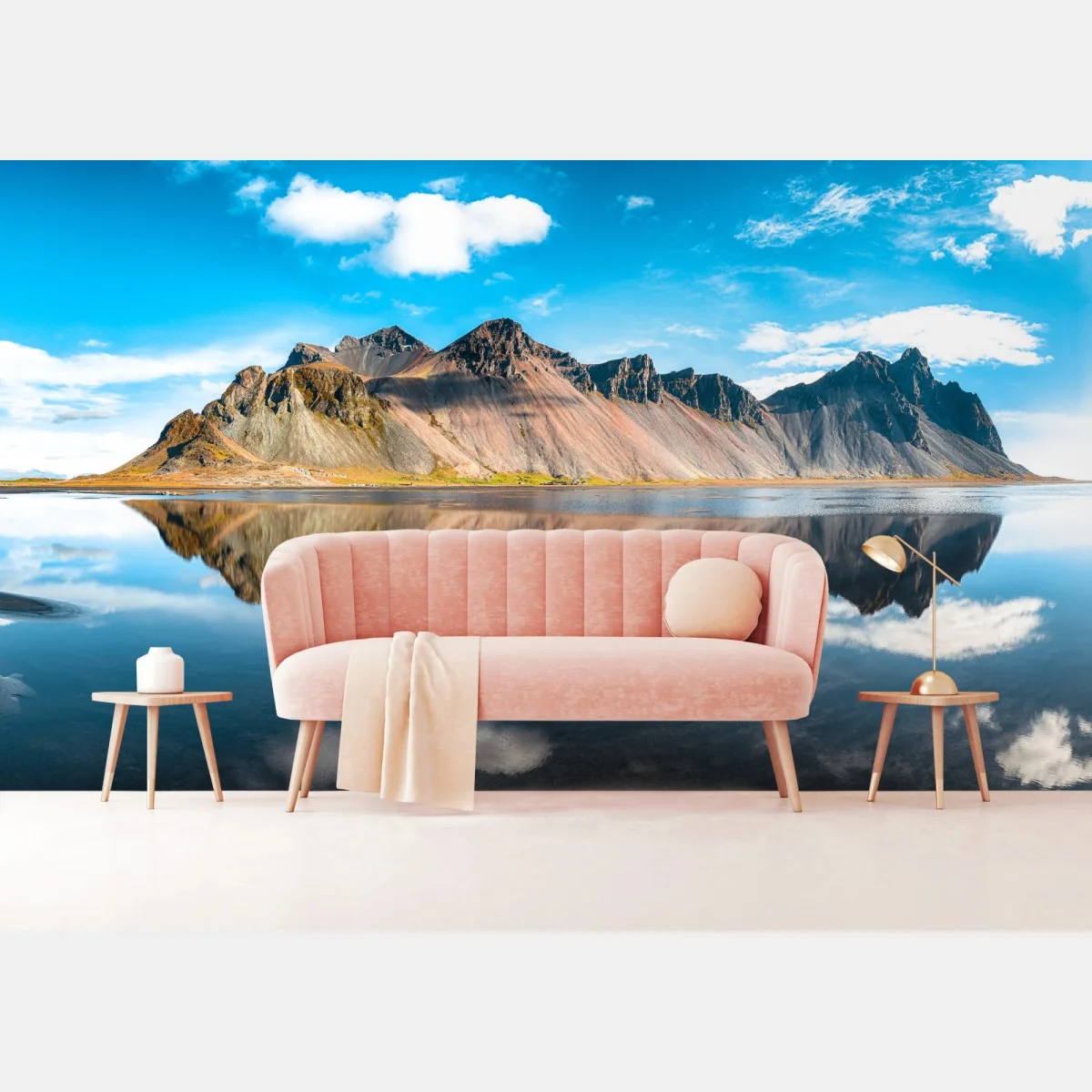 Carta da parati Riflessi di Vestrahorn sulla costa islandese