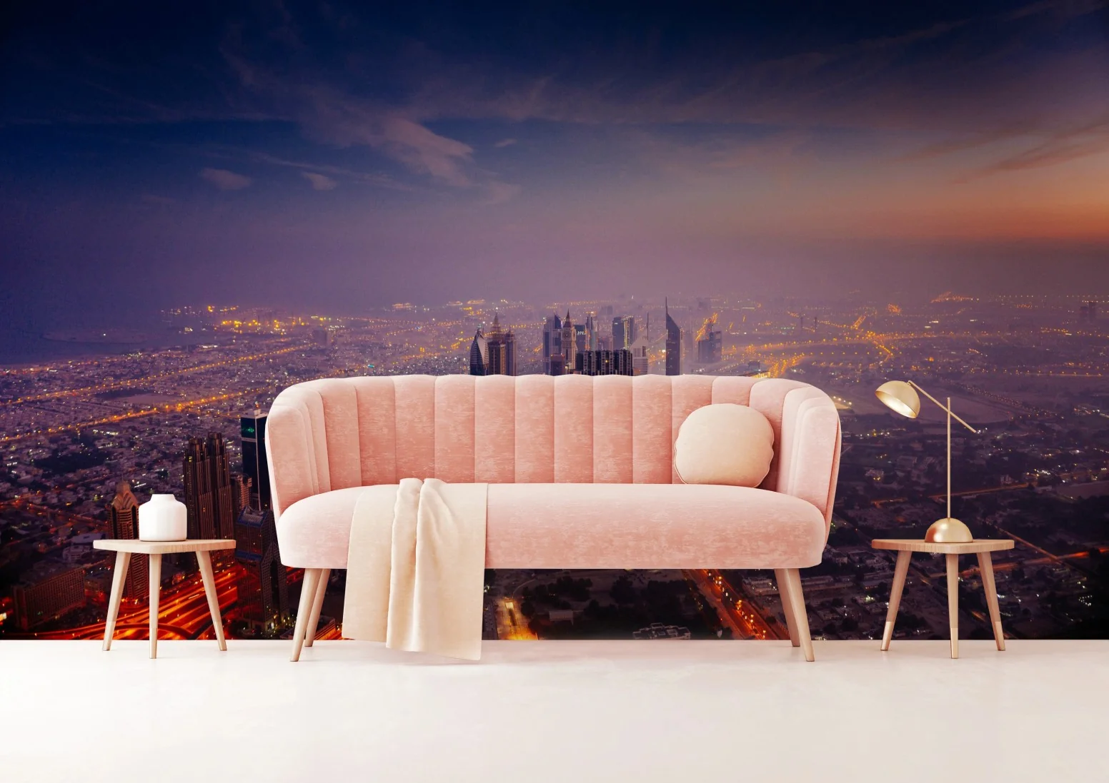 Carta da parati Orizzonte urbano al crepuscolo a Dubai