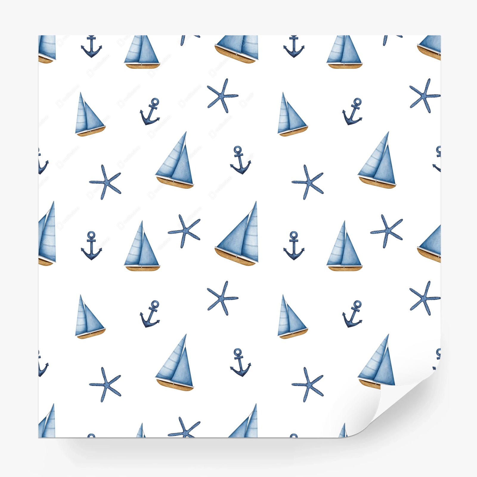 Carta da parati Motivo nautico acquerellato con barche a vela