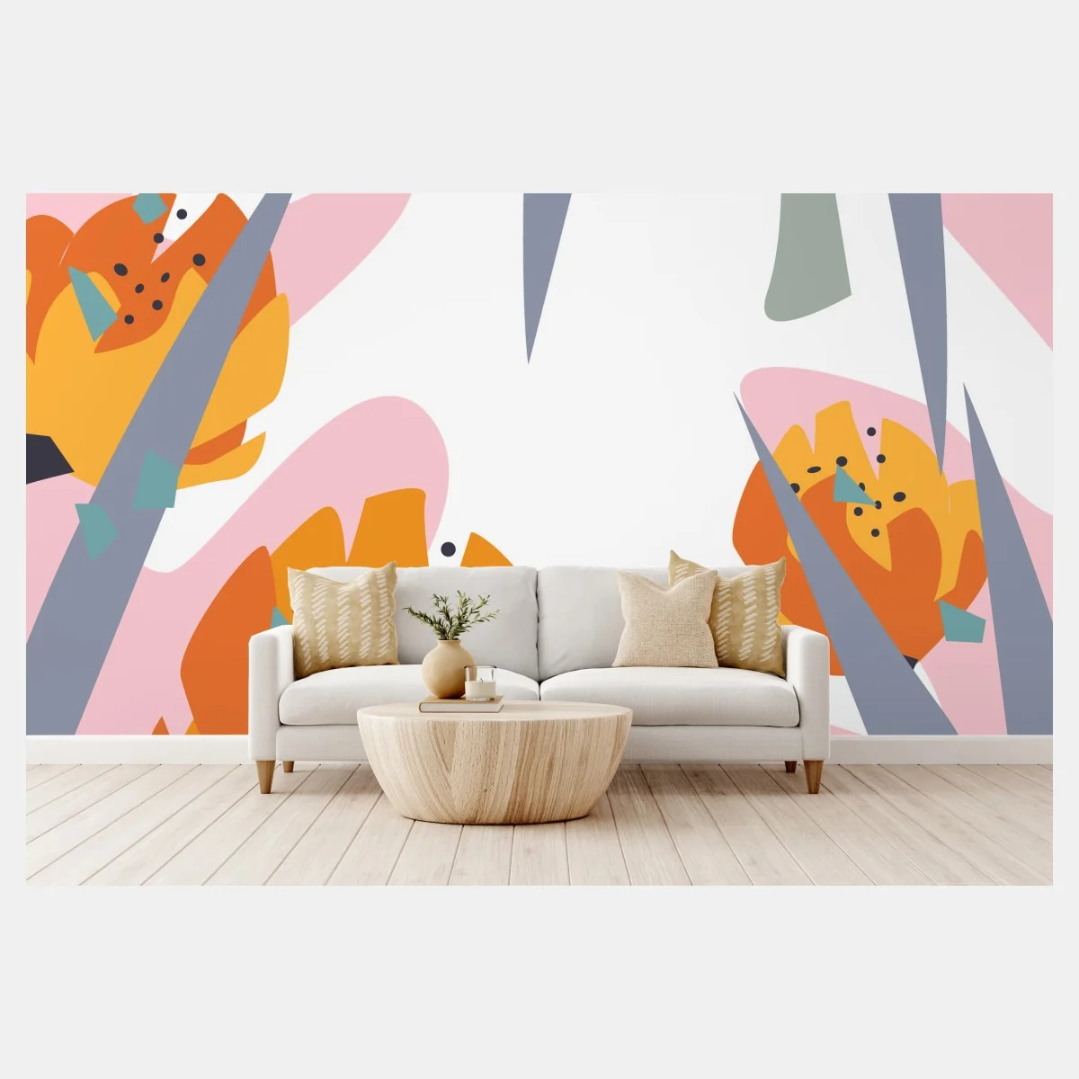 Carta da parati Motivo botanico astratto in arancione e rosa