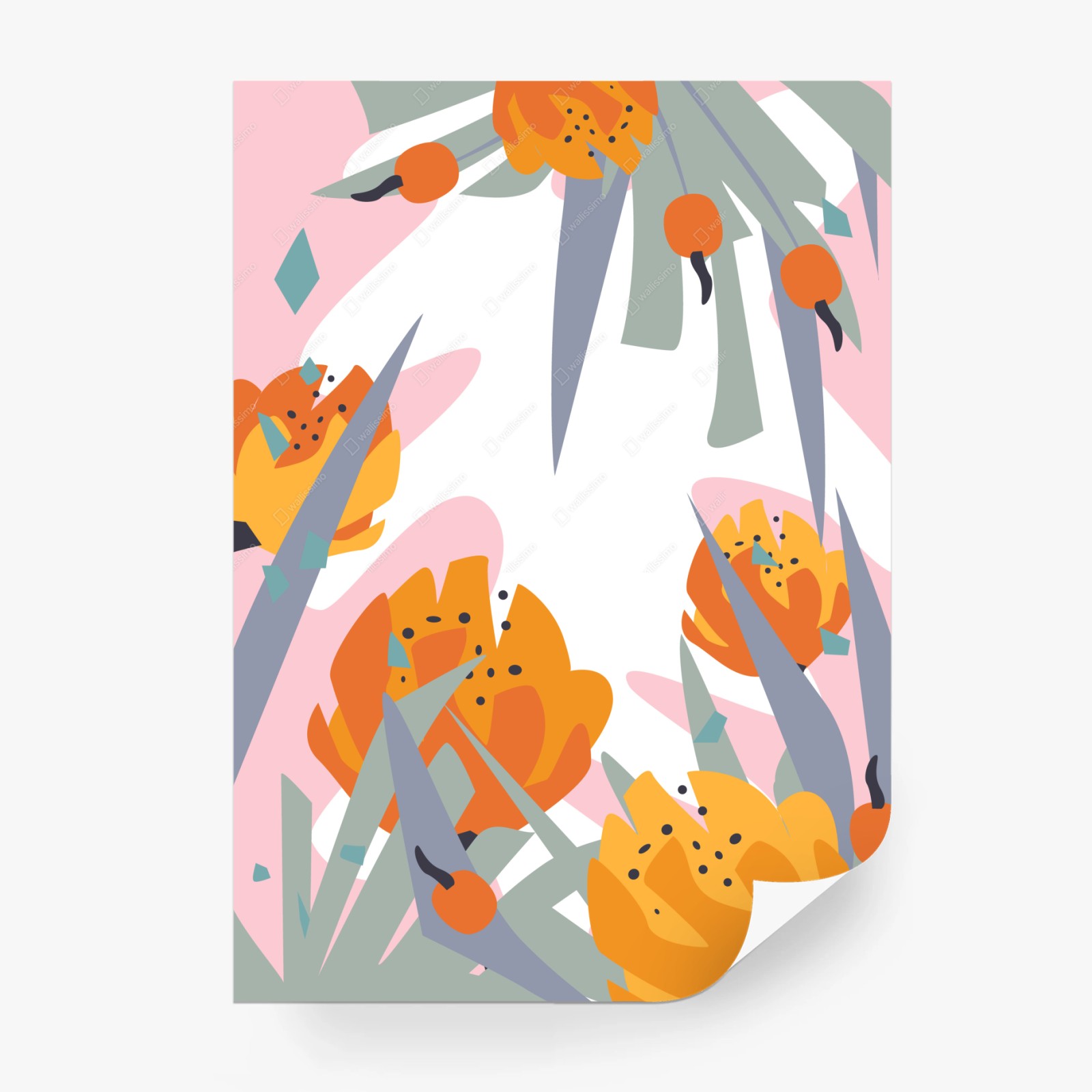 - minimalista, colorato, floreale, decorativo, botanico, foglie, astratto, moderno, rosa, arancione
