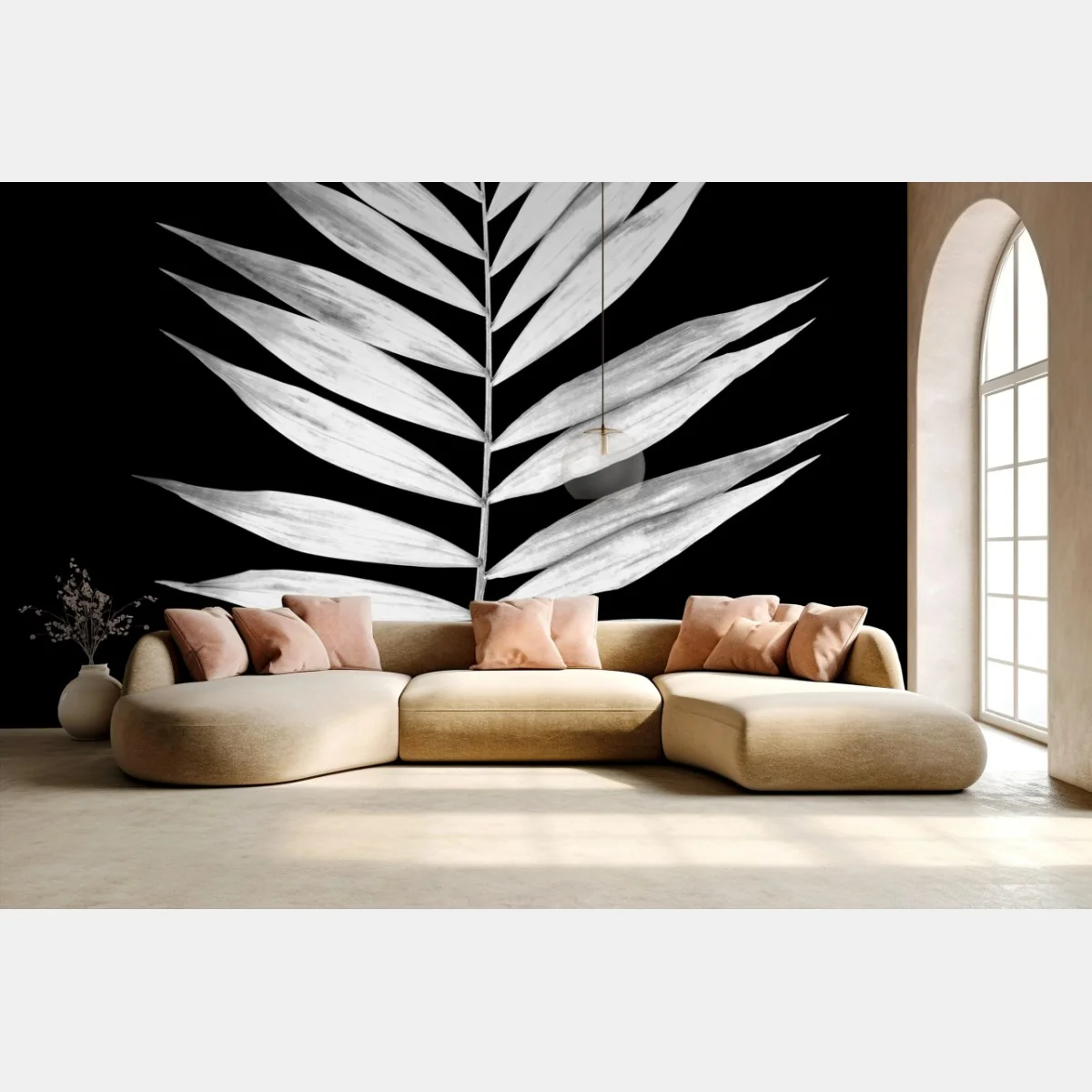 Carta da parati Foglia di palma in bianco e nero minimalista