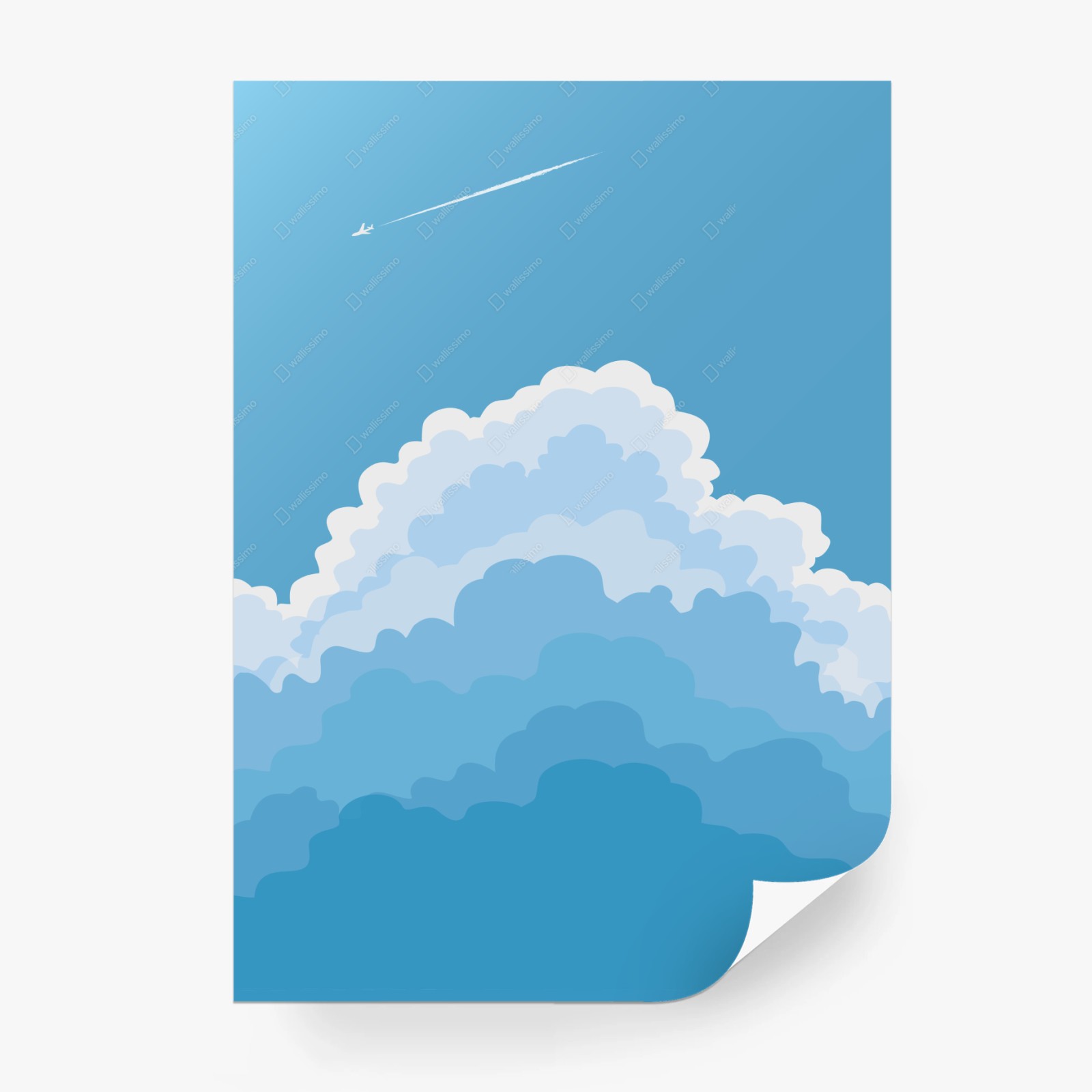 - nuvole, panorama, volo, cielo, minimalista, sereno, illustrazione, aeroplano, azzurro, scia
