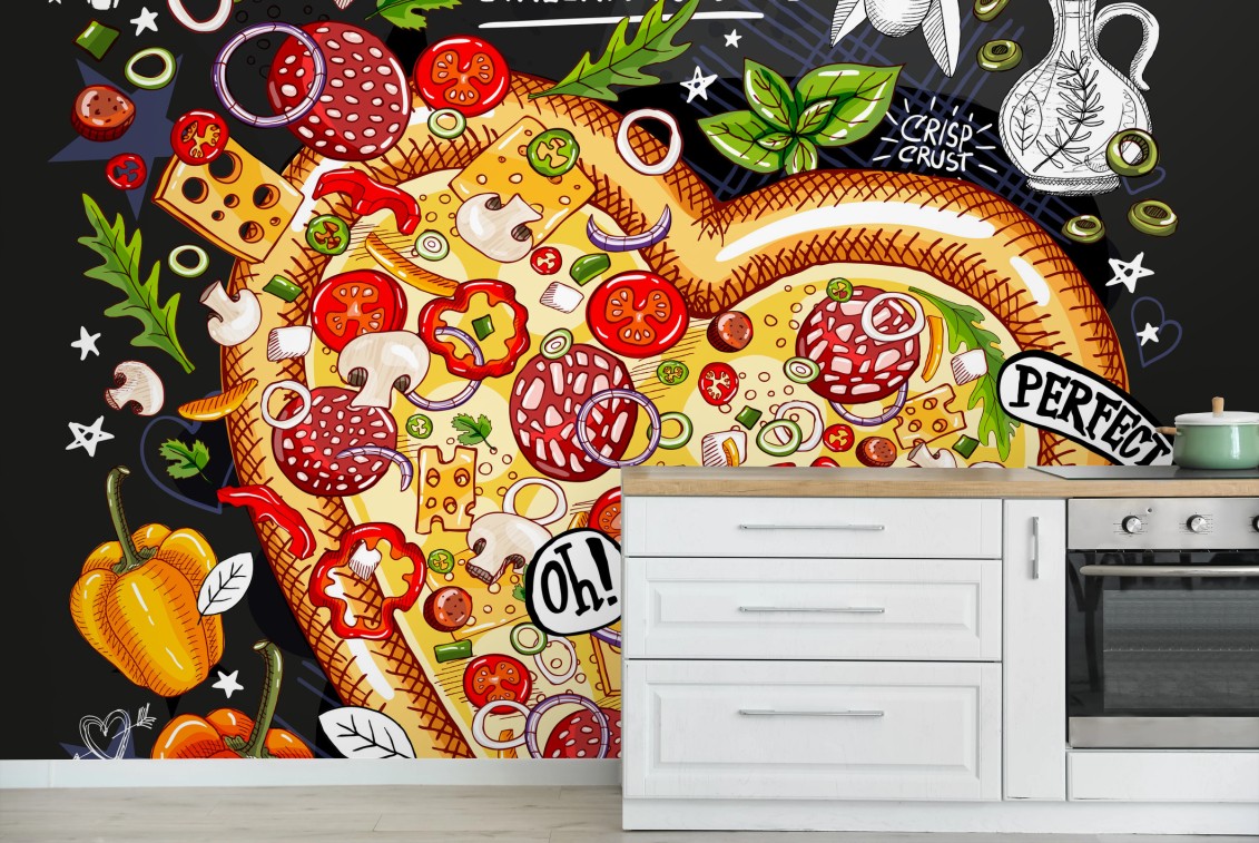 Carta da parati Cuore di pizza pizzeria in stile lavagna