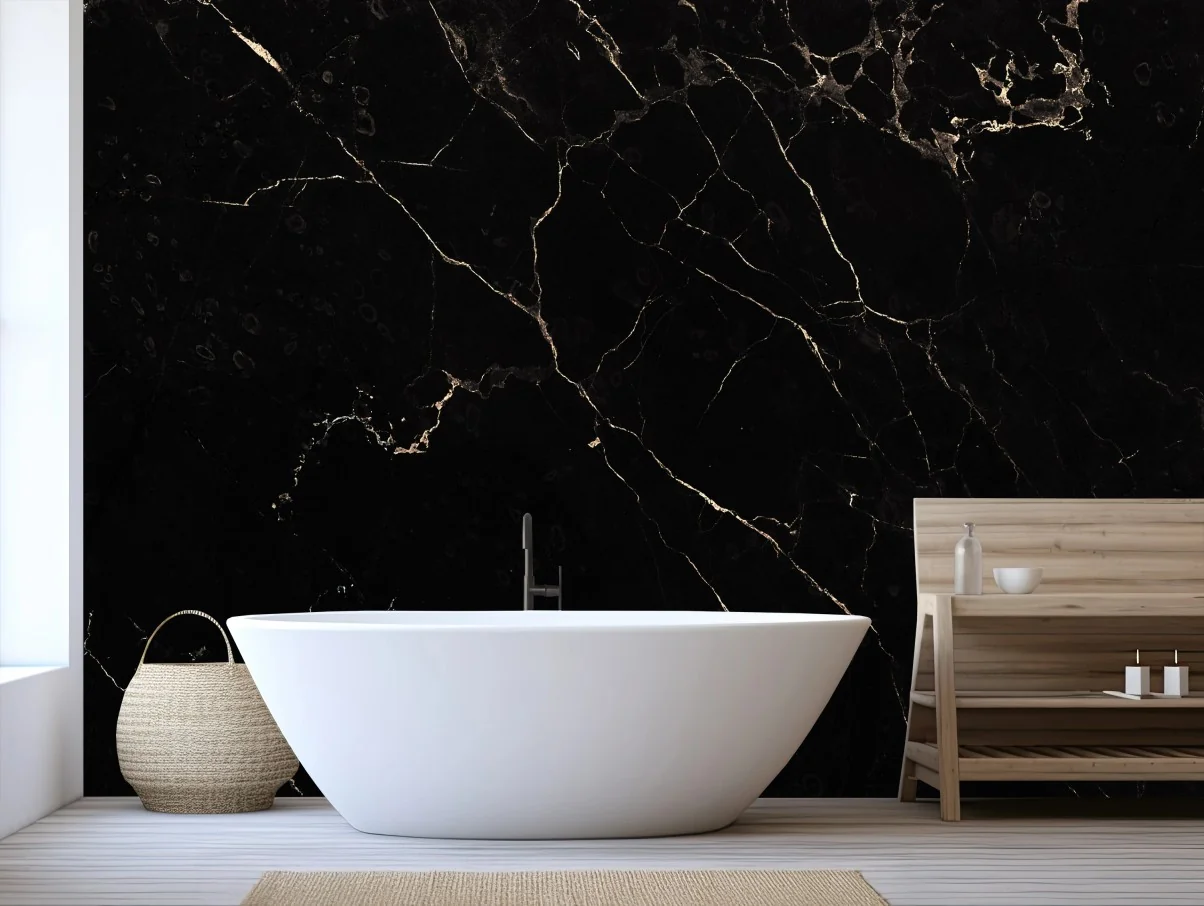 Carta da parati Elegante marmo nero con venature dorate