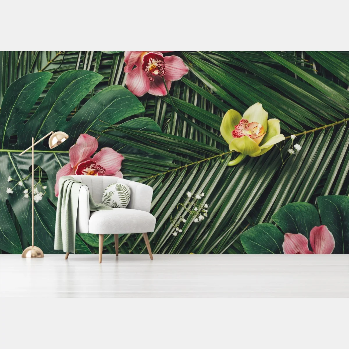 - natura, verde, palme, fiori, decorazione, botanico, estivo, foglie tropicali, motivo floreale, orchidee