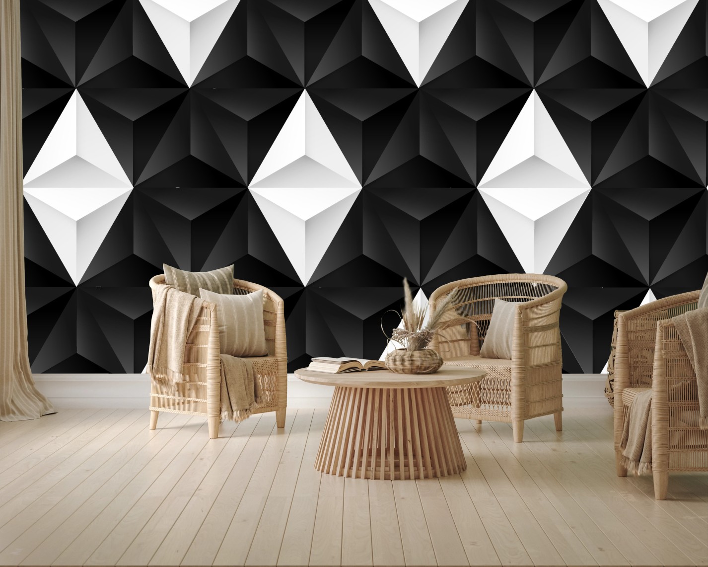 Carta da parati Effetto geometrico tridimensionale in bianco e nero