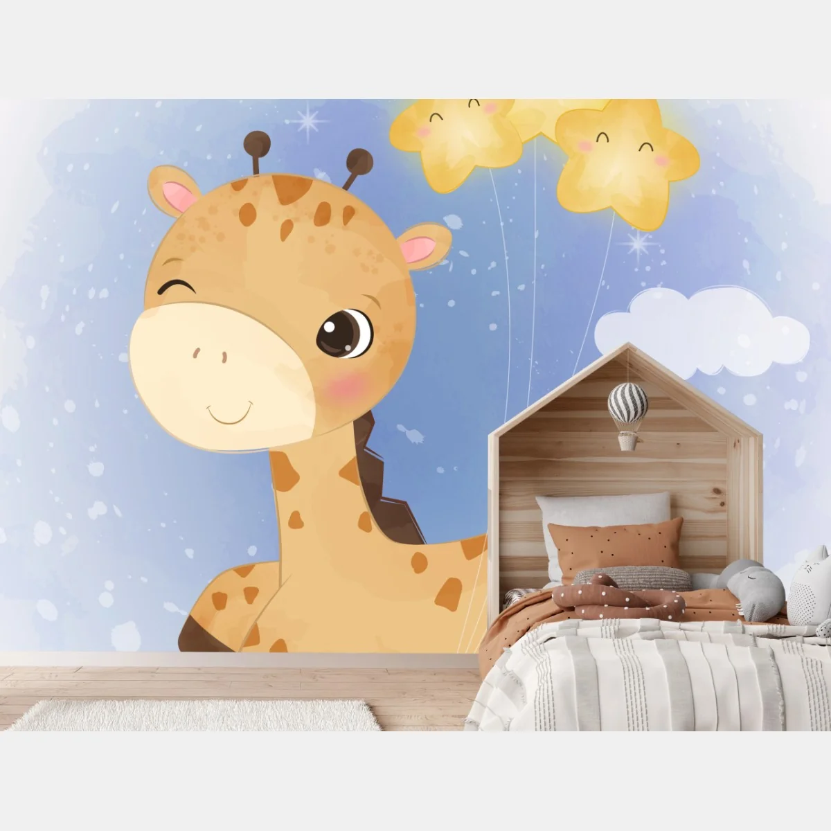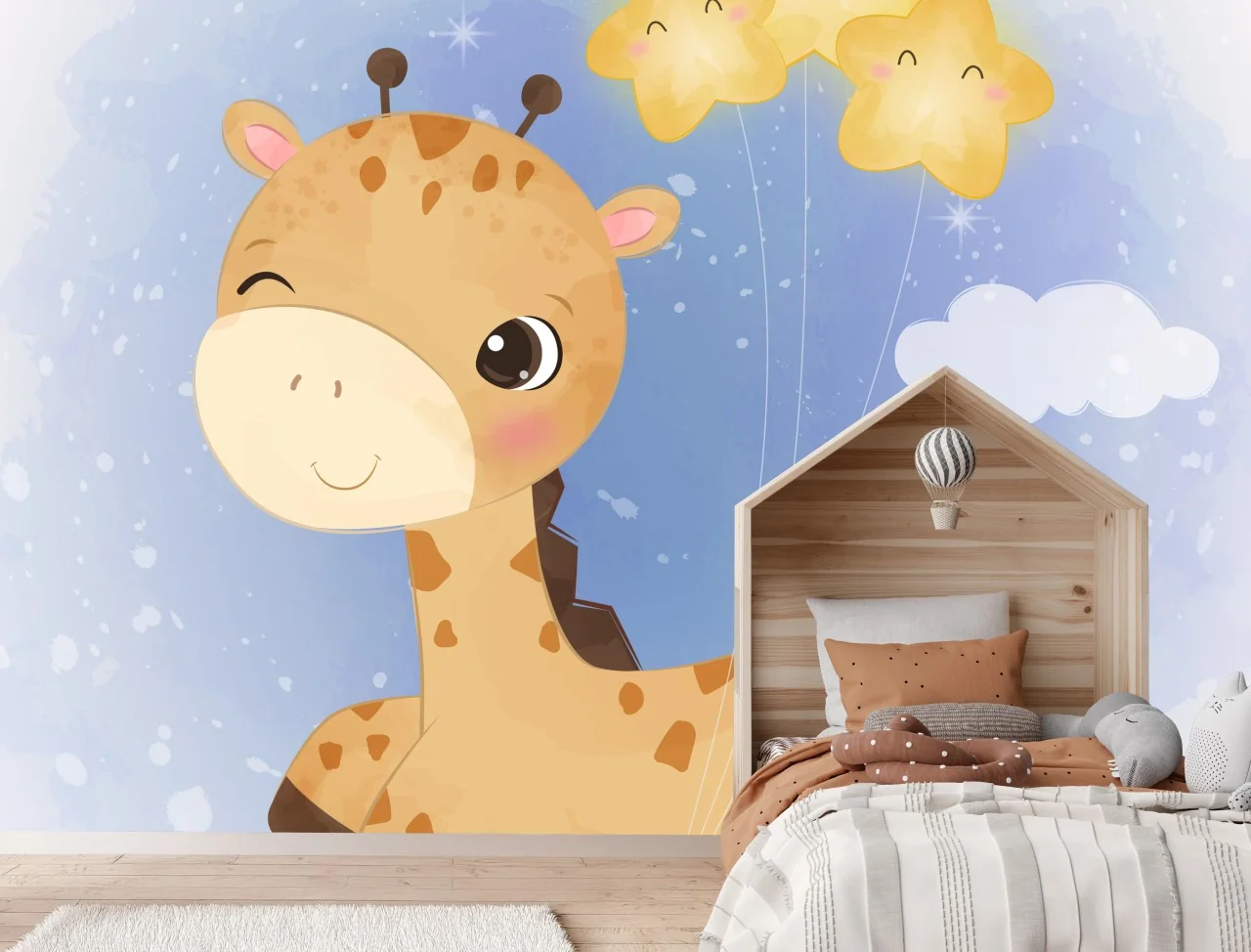 Carta da parati Giraffa con stelle sorridenti nel cielo