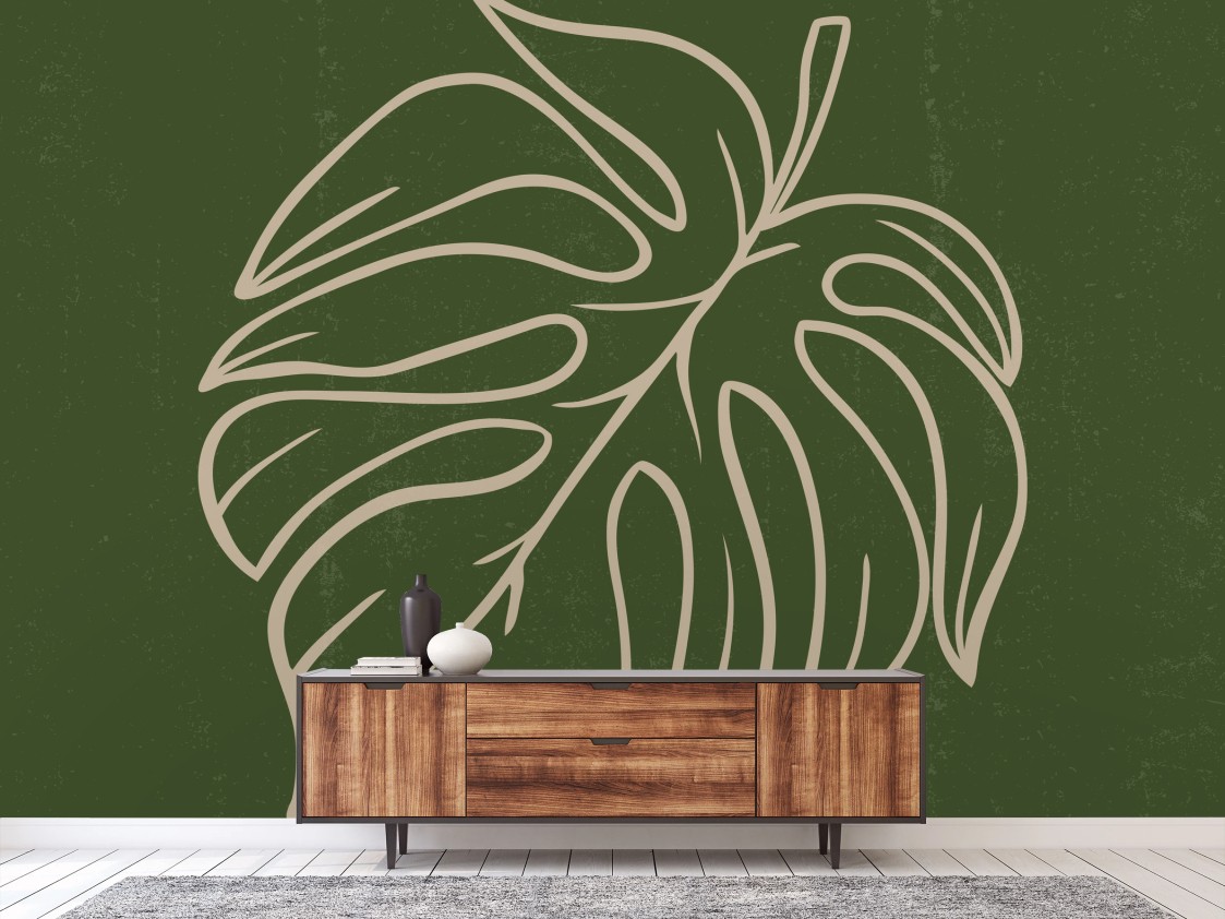 Carta da parati Foglia di monstera minimalista su sfondo verde