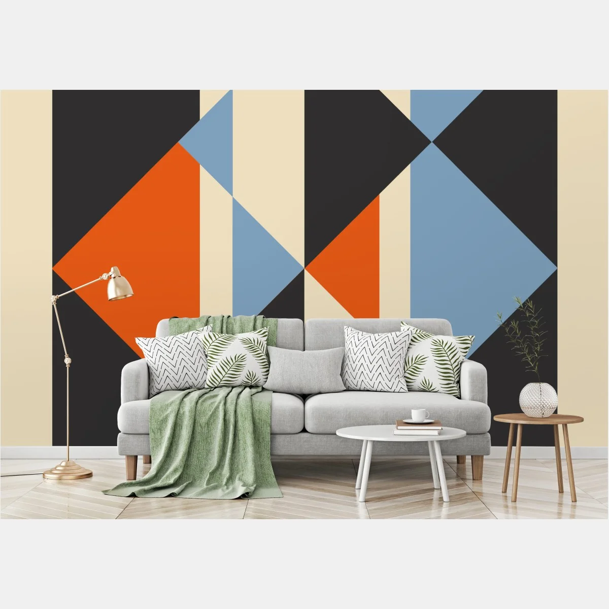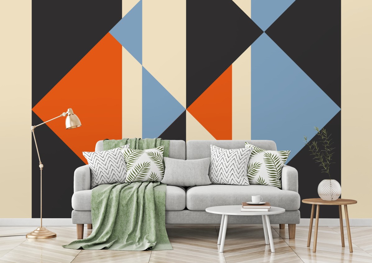 Carta da parati Composizione geometrica retrò dai toni arancione e azzurro
