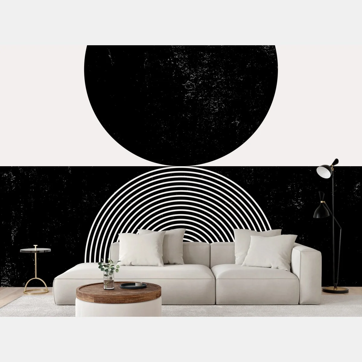 - bianco e nero, minimalista, design moderno, decorazione d'interni, geometrico, arte astratta, texture grunge, cerchi concentrici, composizione minimal, stampa vettoriale