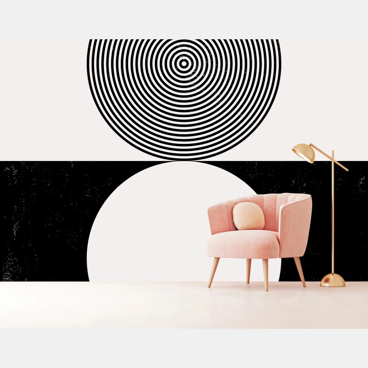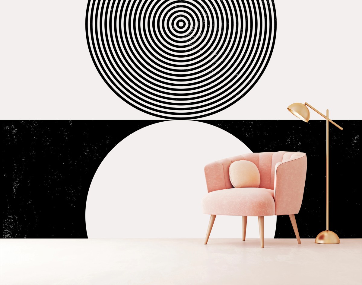 - minimalista, design moderno, astratto, geometrico, contrasto, stile vintage, arte murale, monocromatico, texture grunge, cerchi concentrici