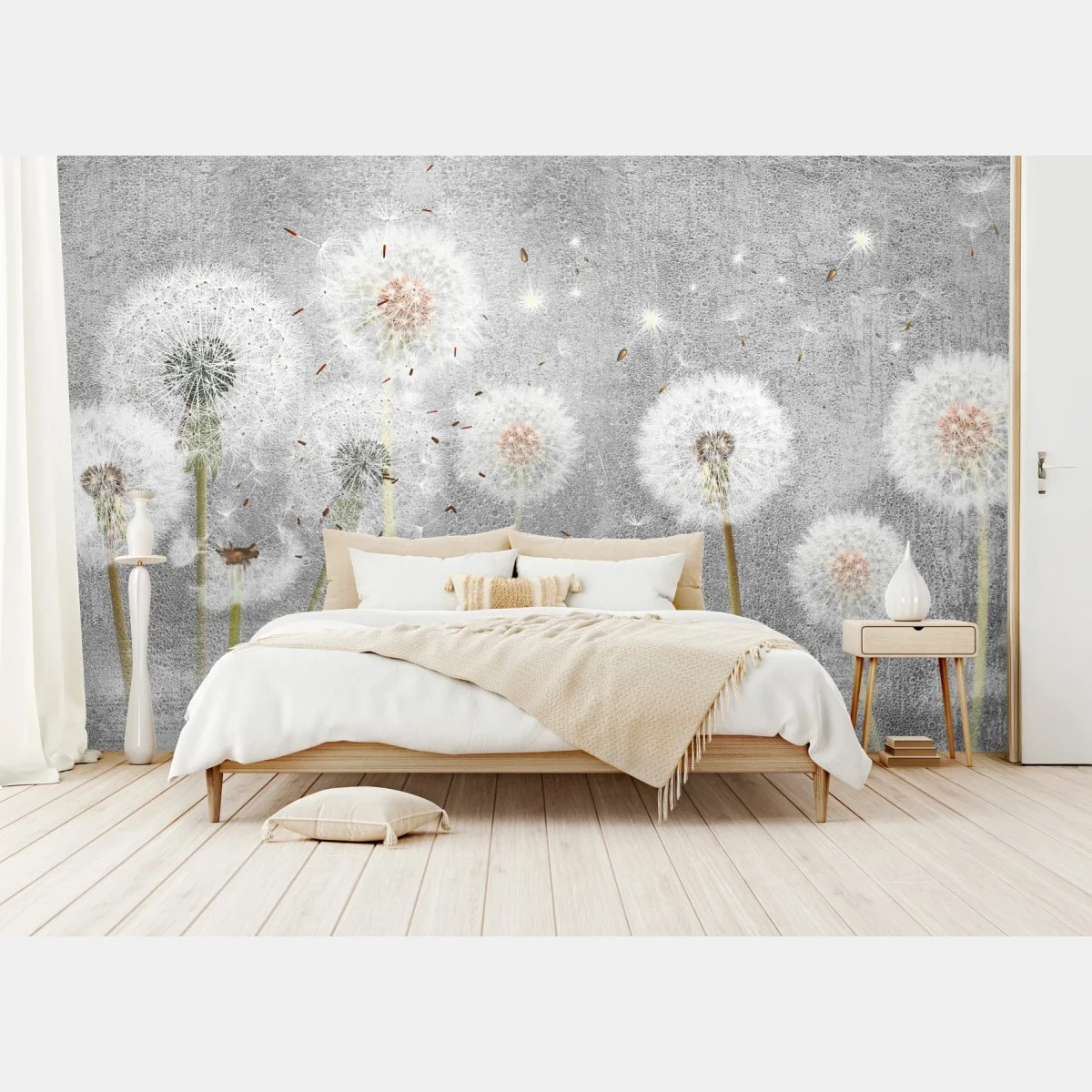 Carta da parati Soffioni nel vento su sfondo grigio testurizzato