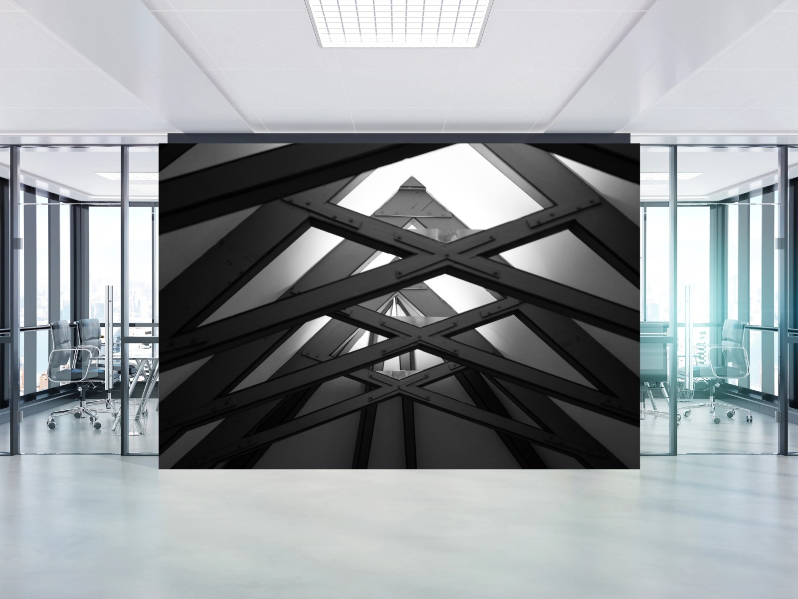 Esplora linee e contrasti in una composizione di geometrie metalliche in bianco e nero che dona un tocco moderno e raffinato agli spazi.Di piùMeno