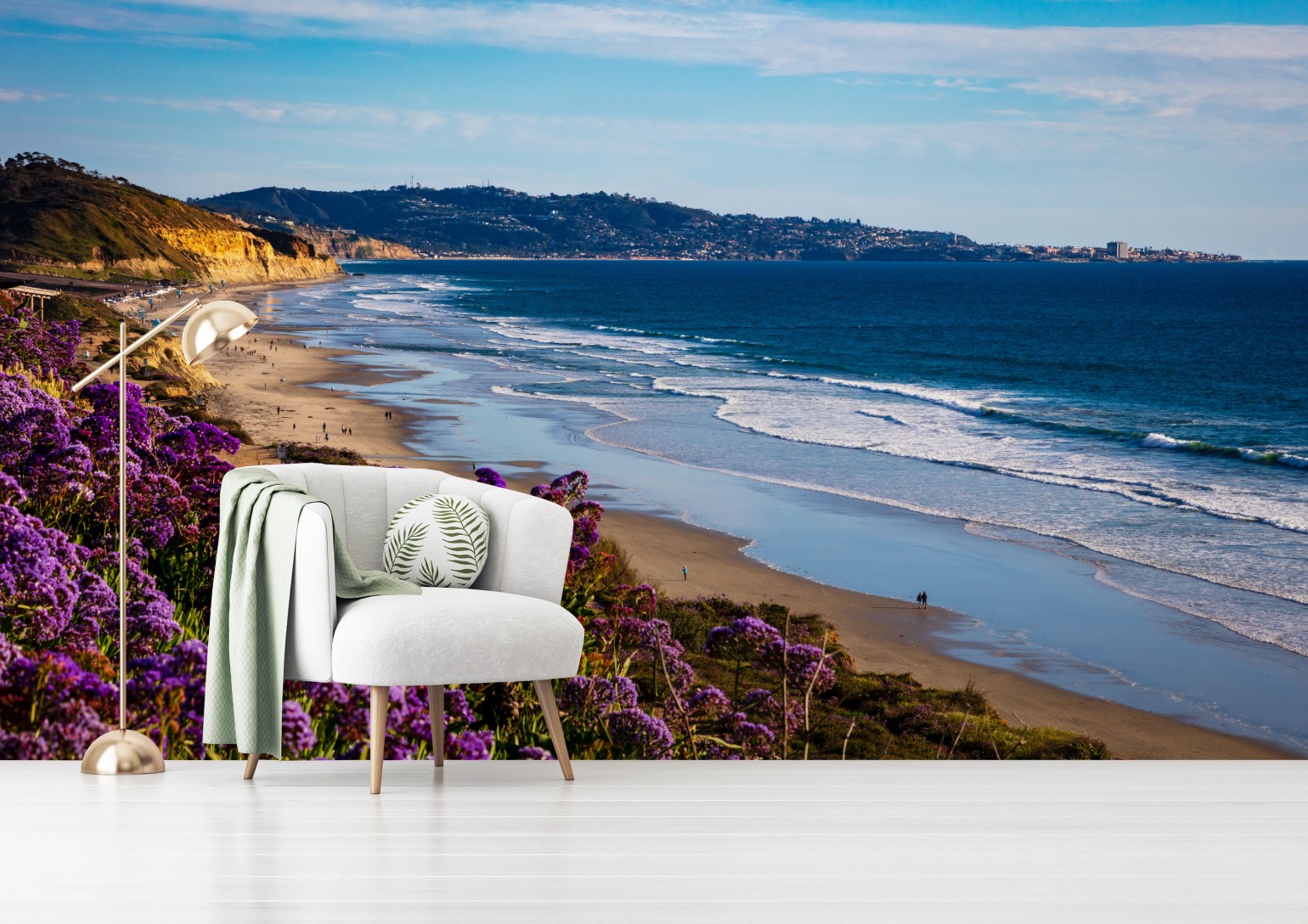 Carta da parati Panorama costiero con fiori viola e scogliera