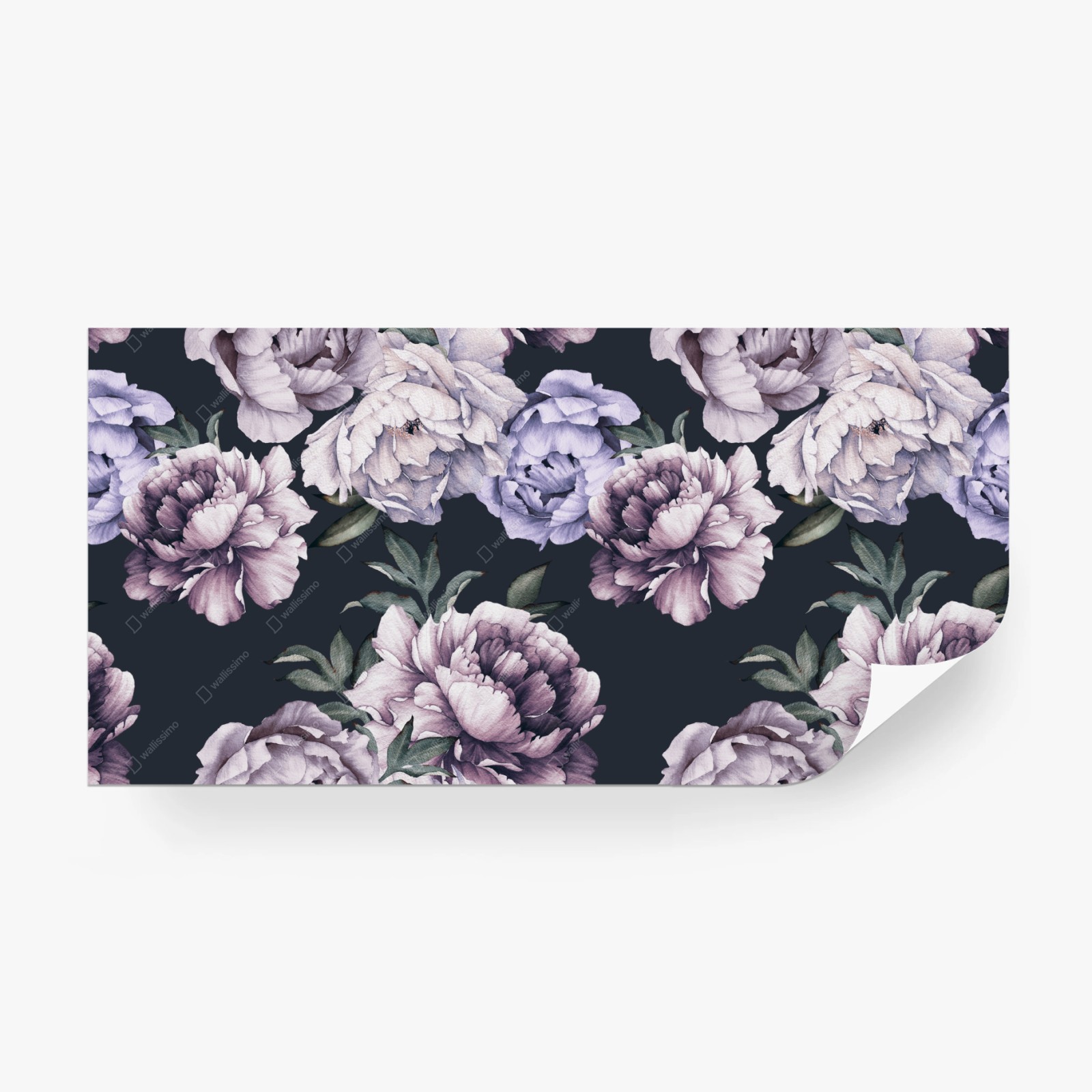 Carta da parati Motivo di peonie acquerello su sfondo scuro