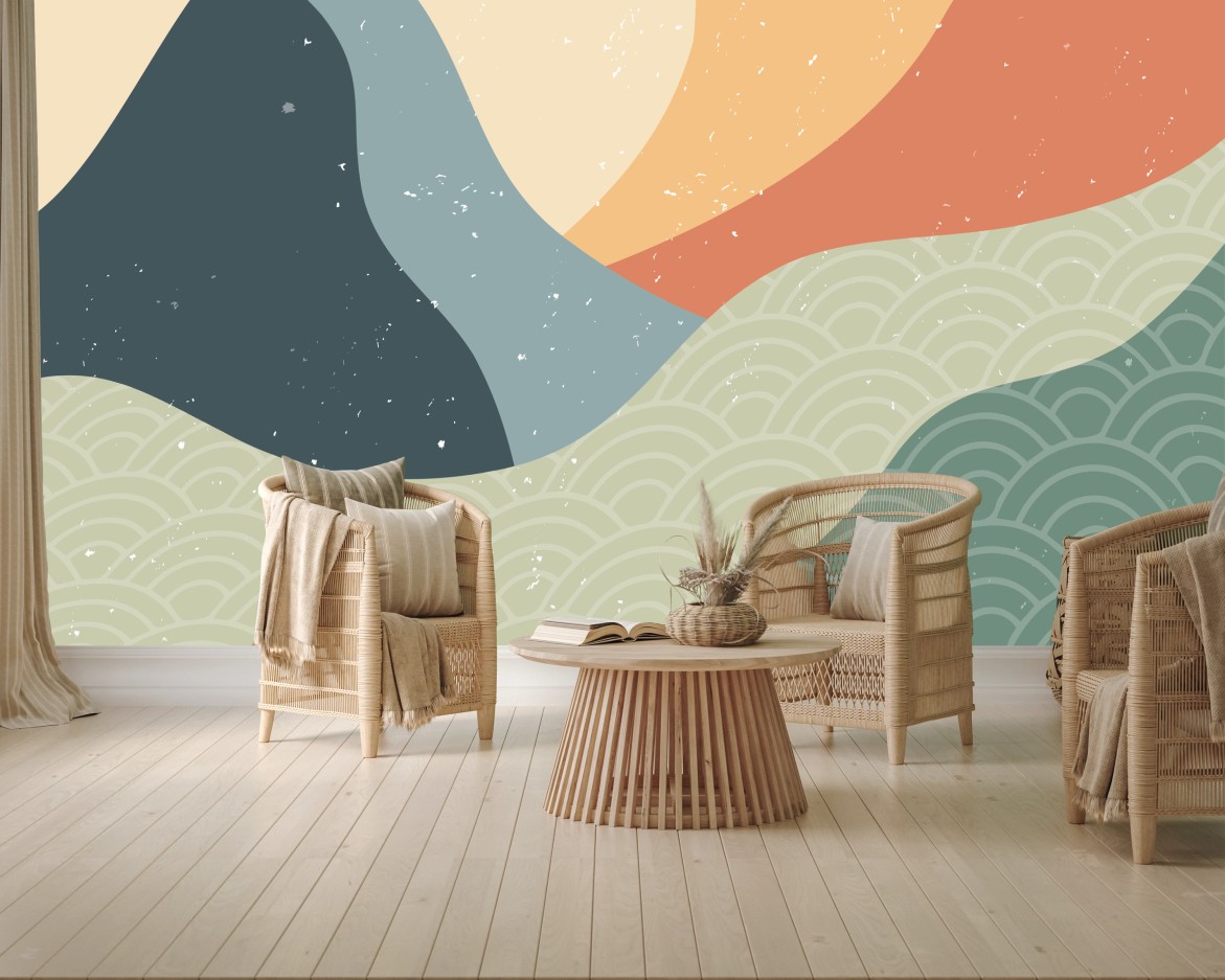 - paesaggio, montagna, decorazione, onde, minimalista, astratto, colori pastello, giapponese, geometrico, texture vintage