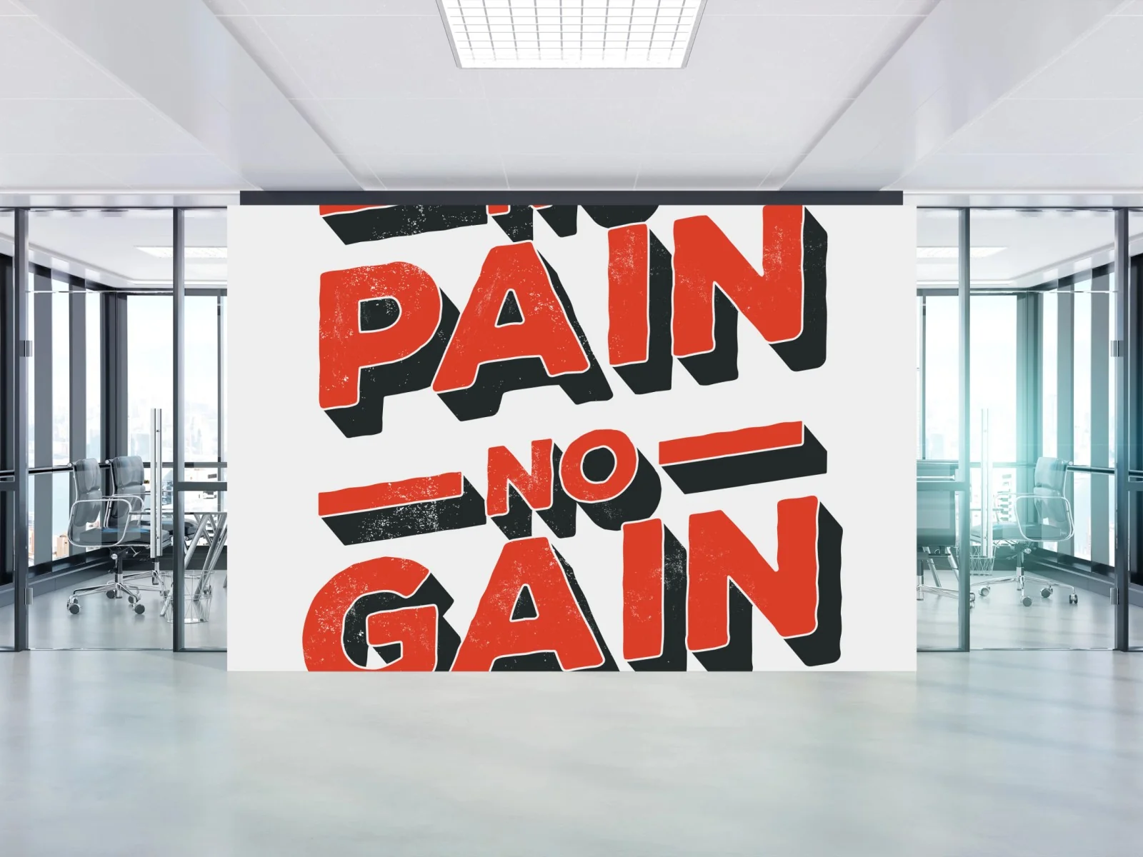 Carta da parati Lettering motivazionale no pain no gain in stile retrò
