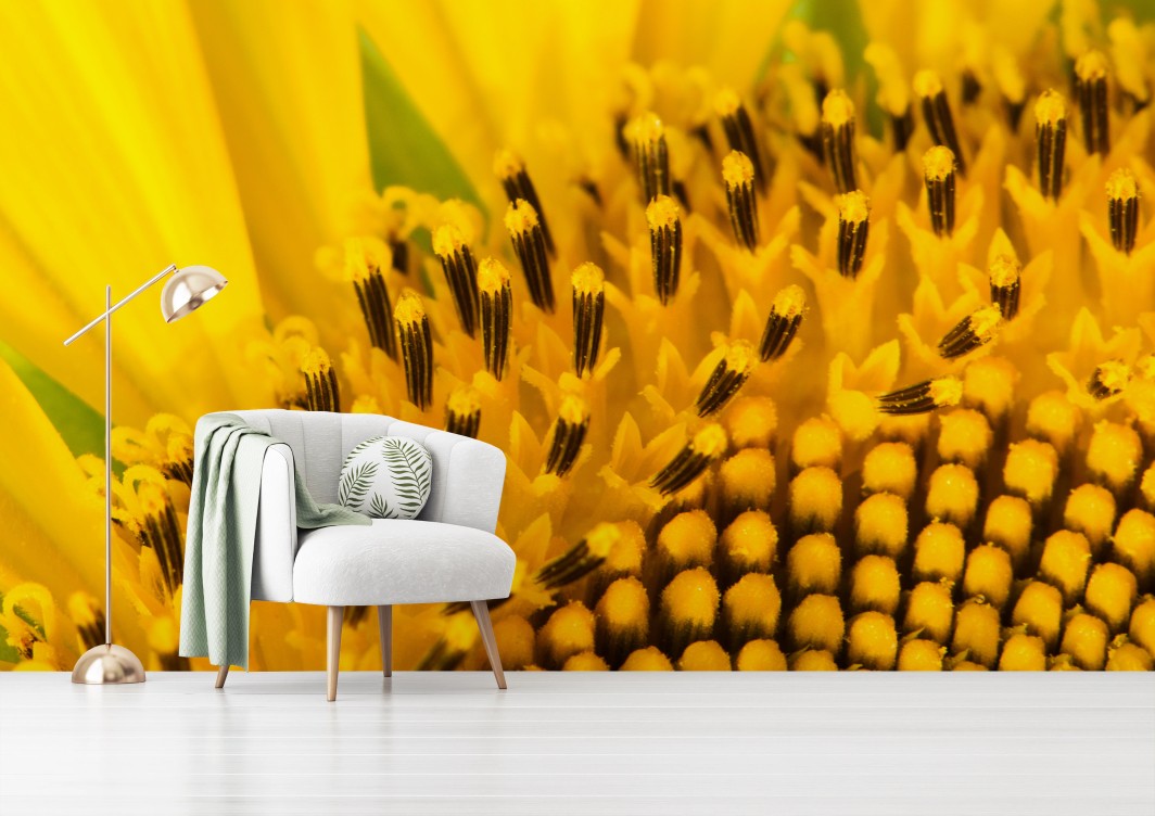 Carta da parati Girasole in macro spirale dorata