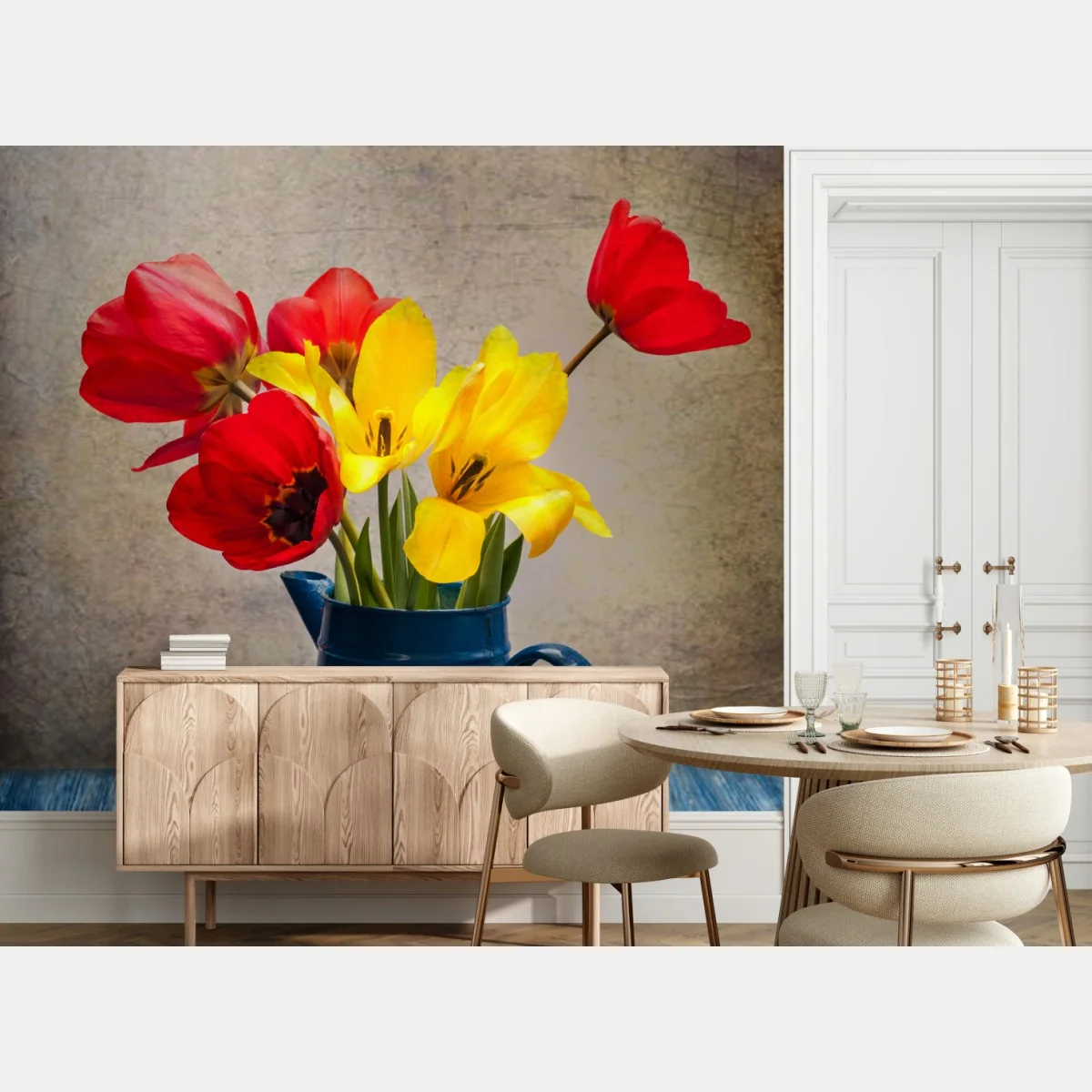 Carta da parati Bouquet di tulipani gialli e rossi su sfondo vintage