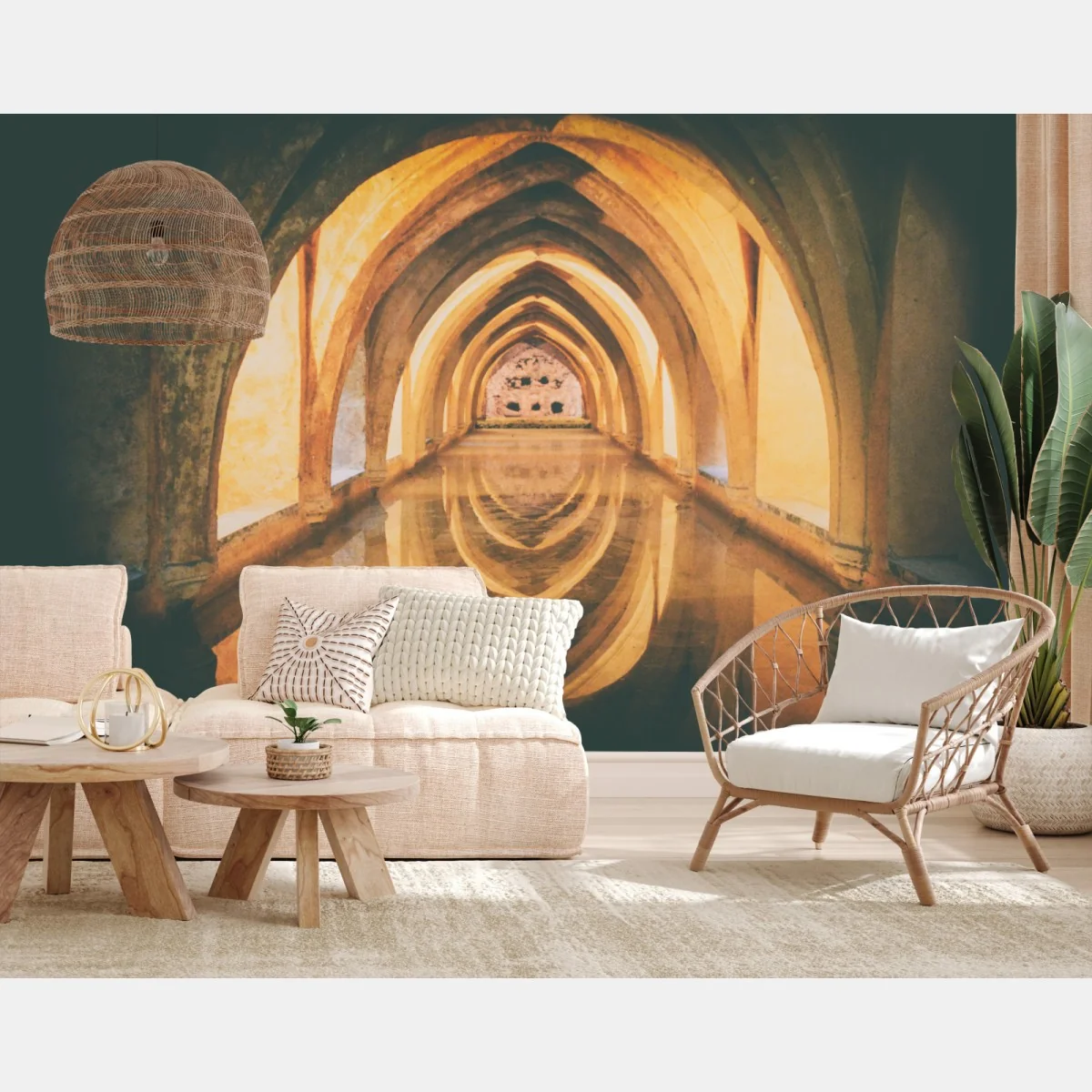 - acqua, architettura, riflesso, atmosfera mistica, luce dorata, simmetria, storia, archi, corridoio, interno storico