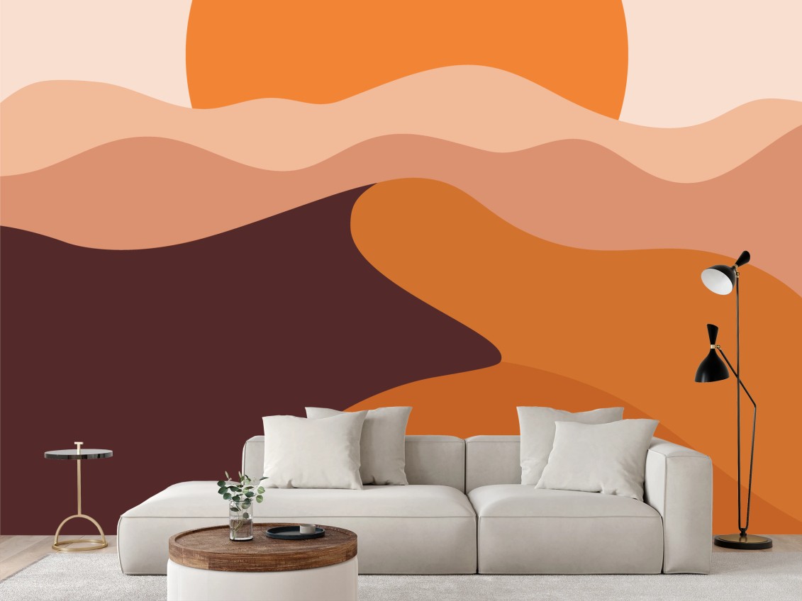 - paesaggio, tramonto, decorazione, deserto, colori caldi, minimalista, astratto, dune, geometrico, interni