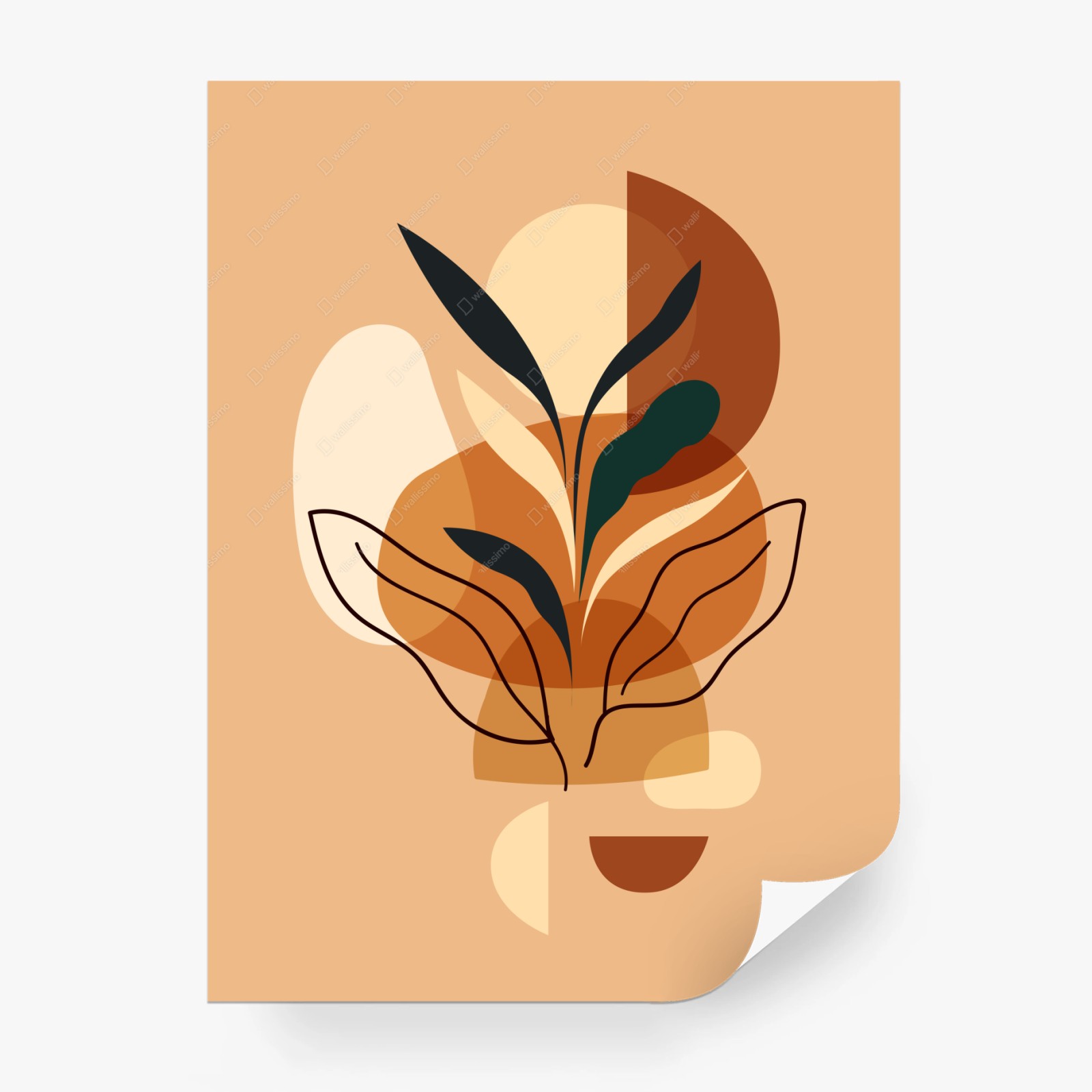 - minimalista, decorazione murale, foglie, astratto, arte moderna, pianta, forme organiche, ocra, terracotta, palette calda