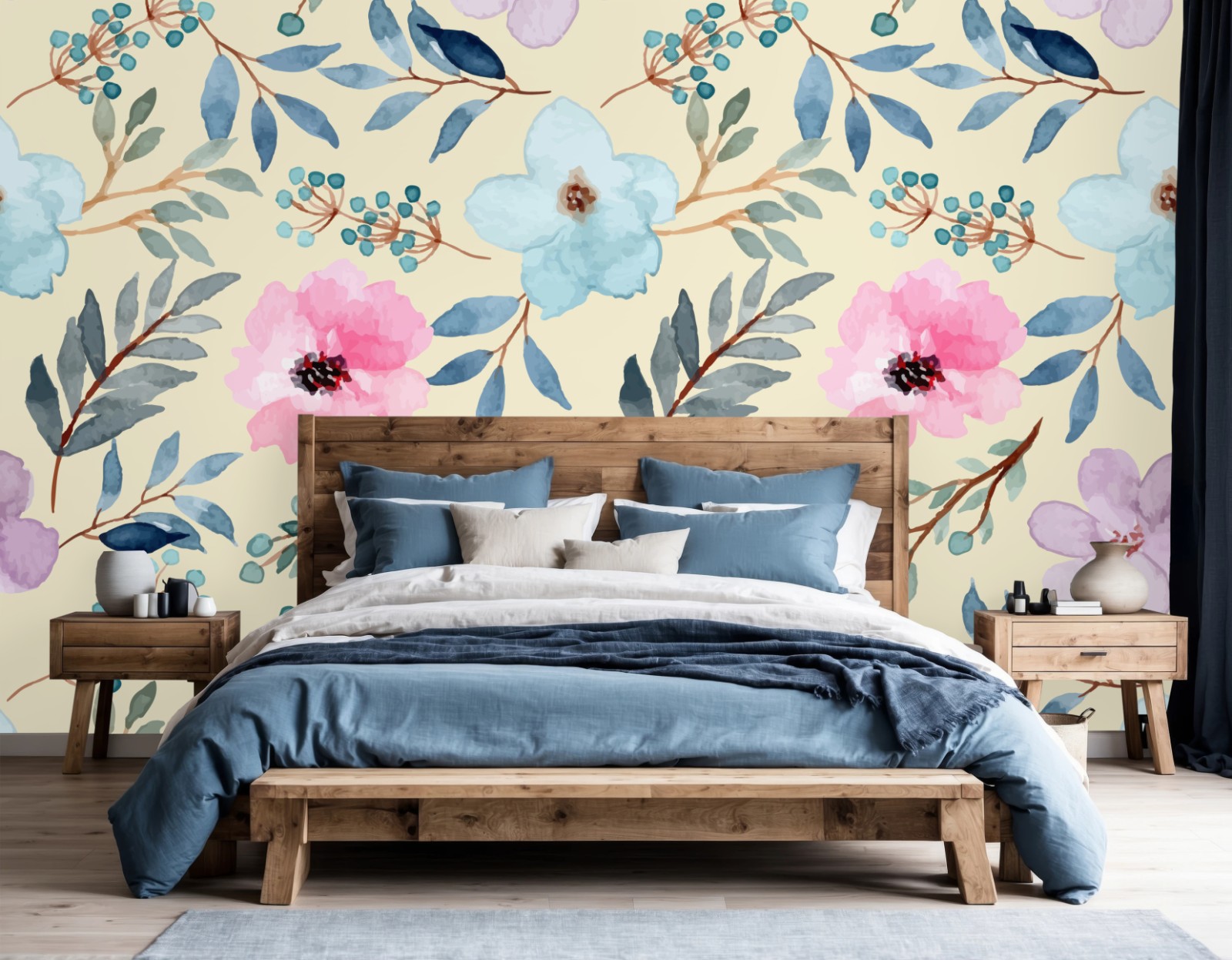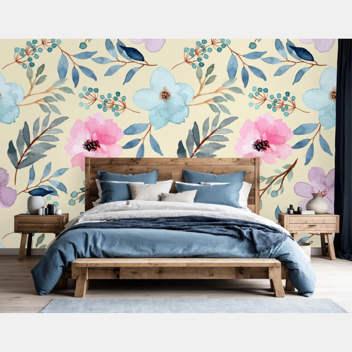 Carta da parati Motivo floreale acquerellato in toni pastello