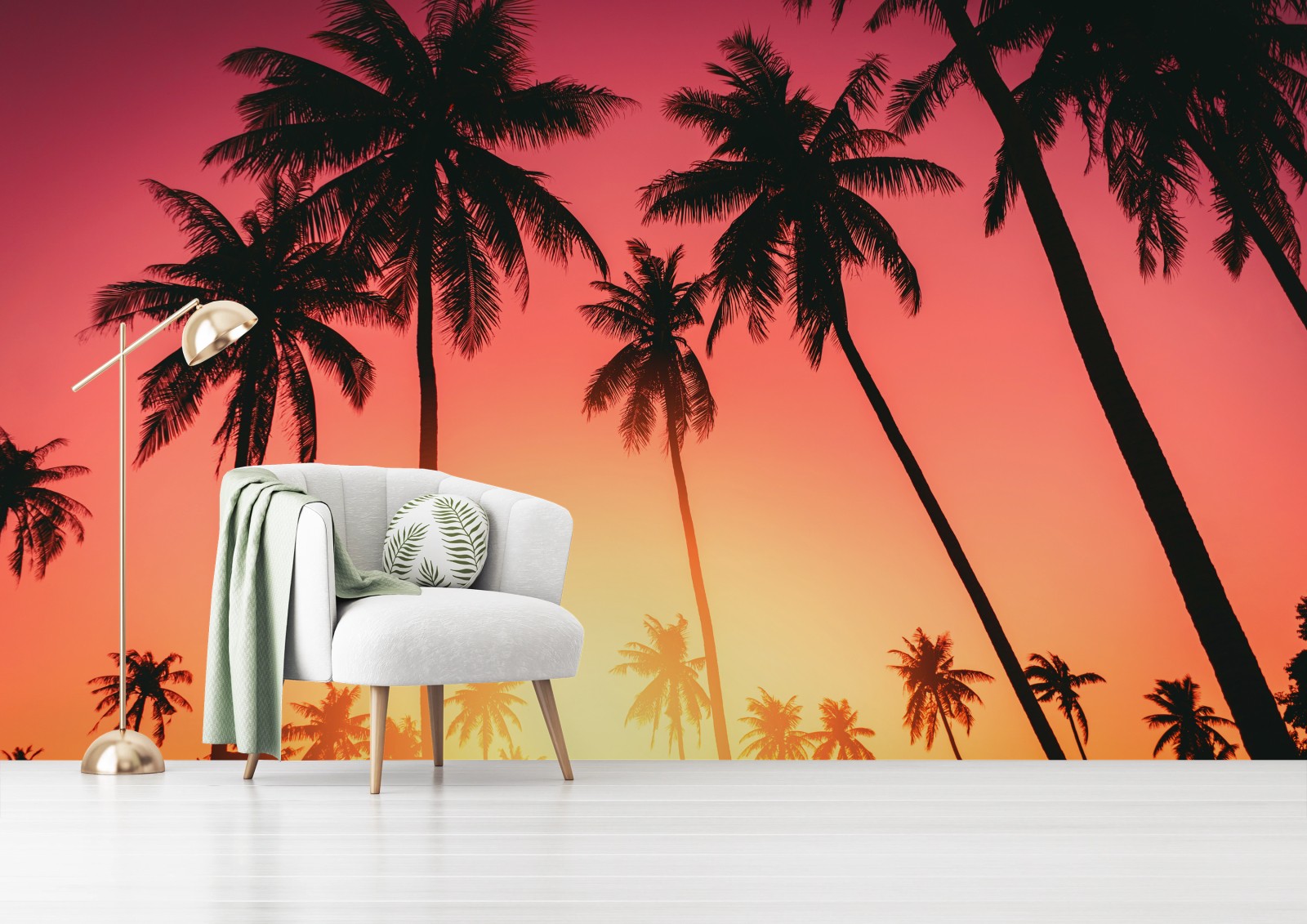 Carta da parati Tramonto tropicale con palme in silhouette