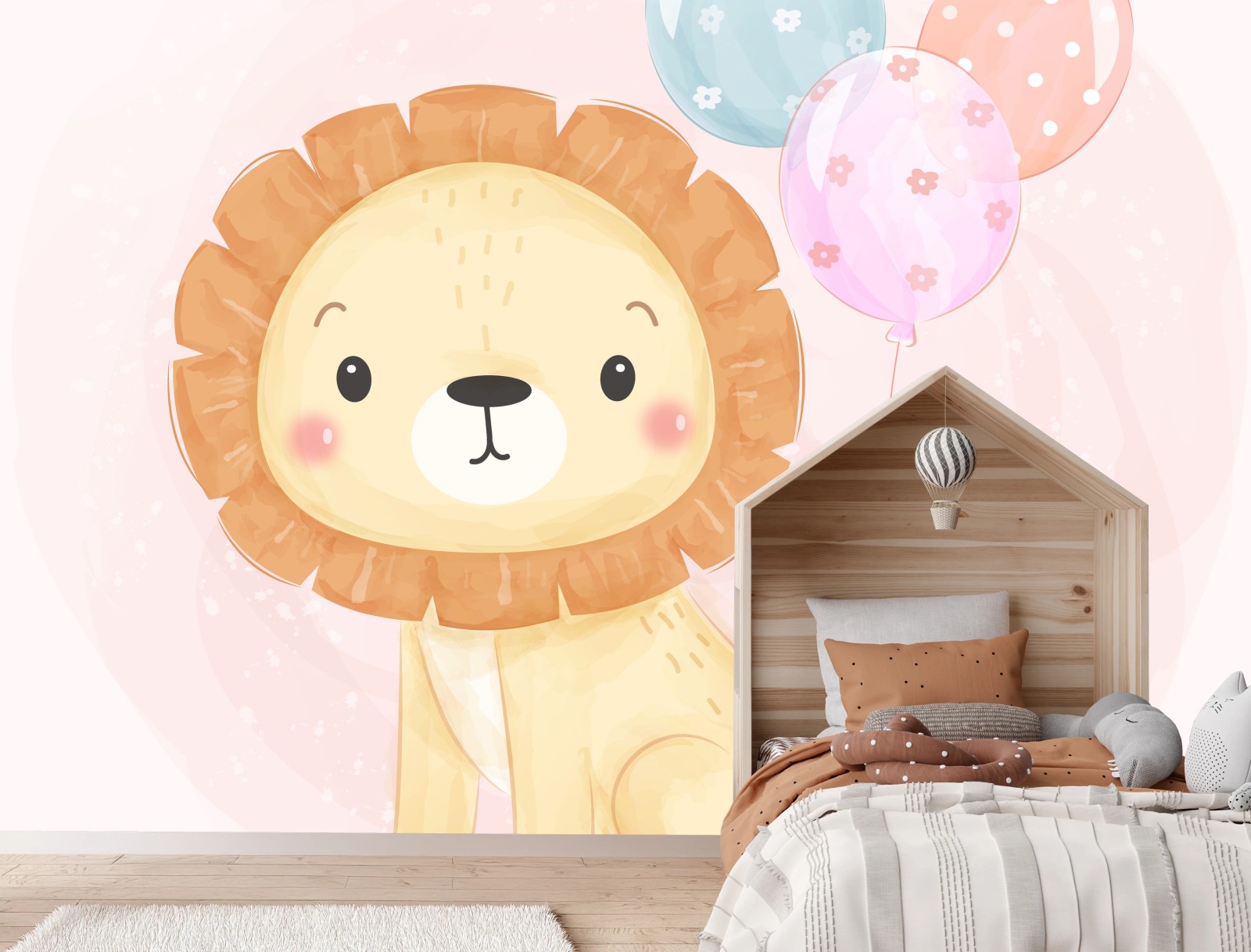 Carta da parati Leoncino pastello con palloncini