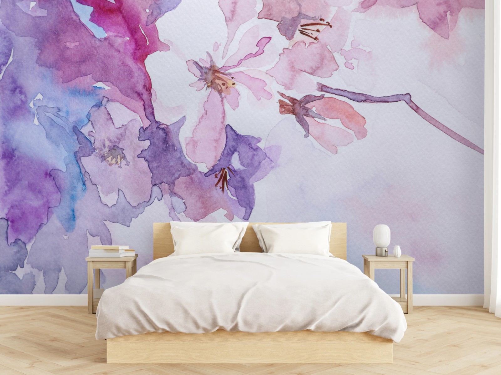 - fiori, floreale, decorativo, astratto, parete, pastello, delicato, acquerello, viola, rosa