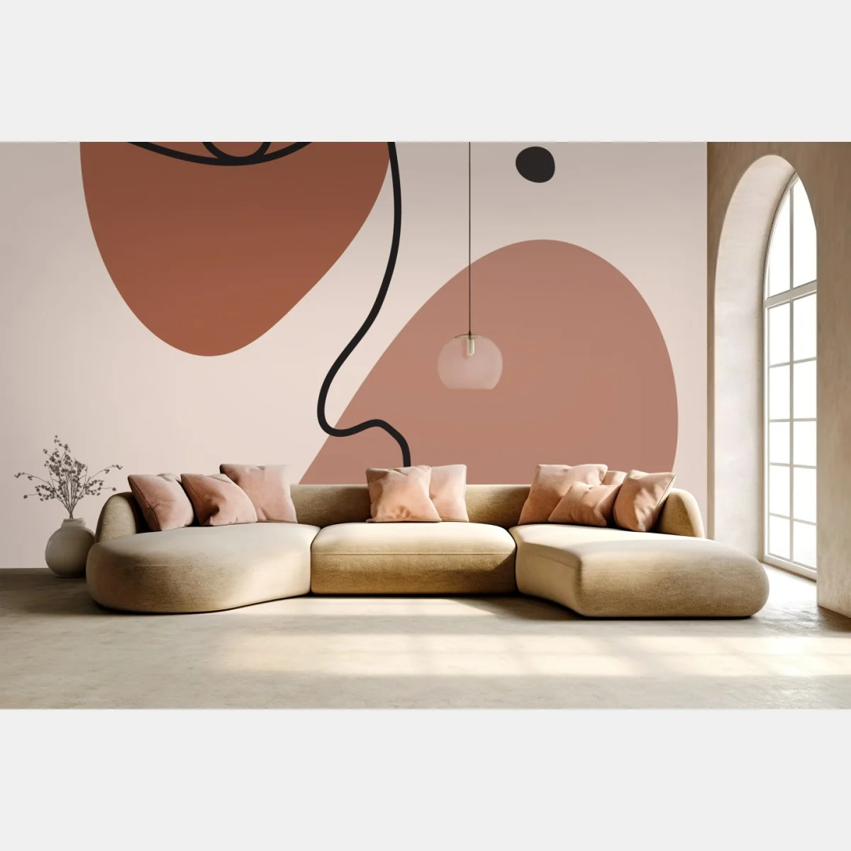 Carta da parati Ritratto astratto a linea continua in pastelli caldi