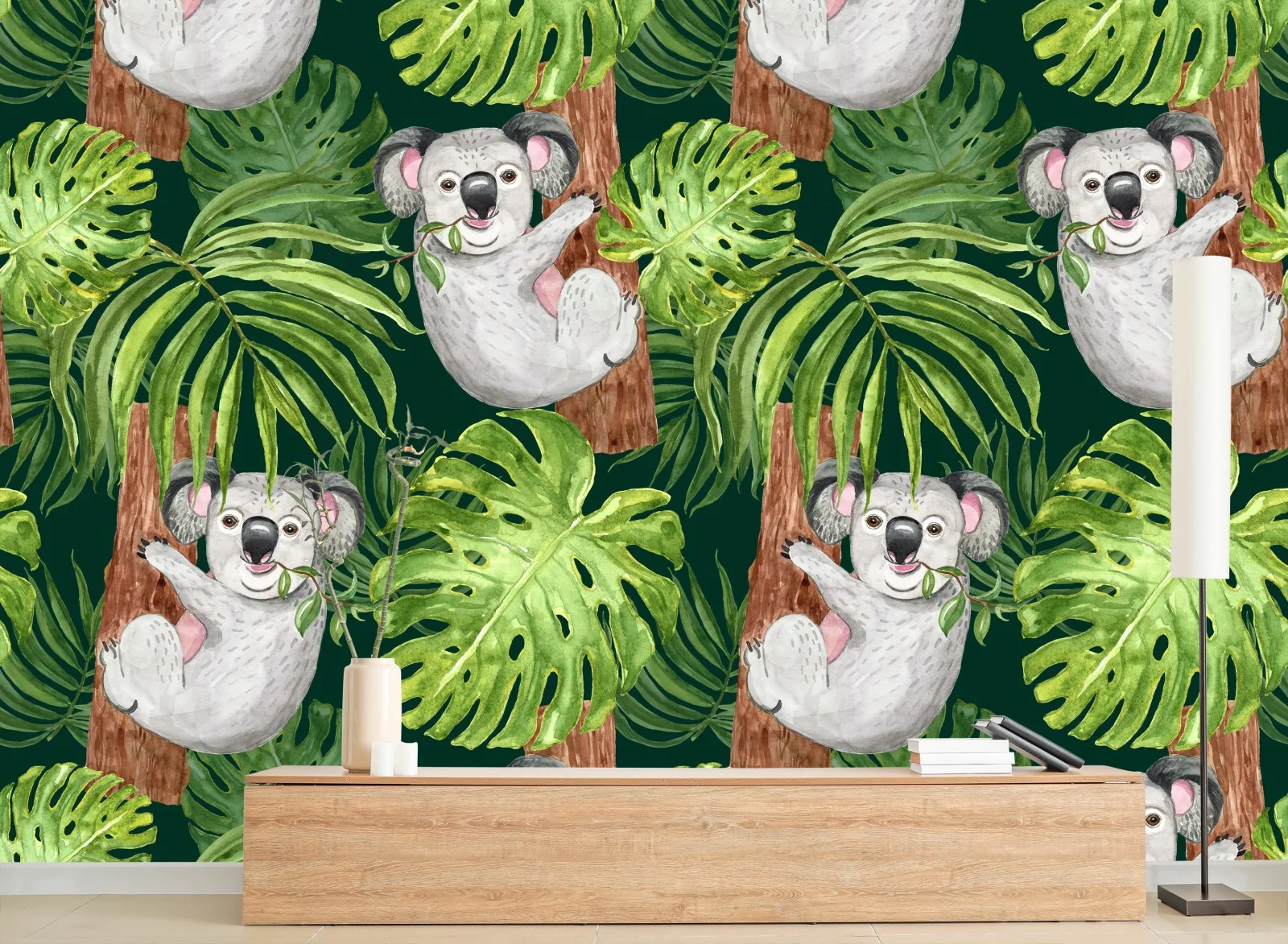 - verde, giungla, tropicale, animale, pattern, decorativo, foglie, acquerello, motivo botanico, koala